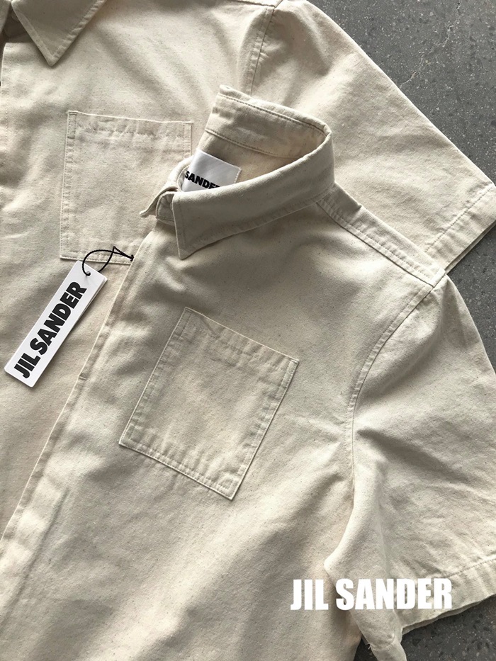 ジルサンダーメンズベーシックコットン半袖シャツl0027アイボリー