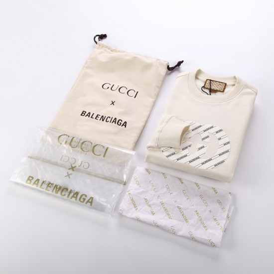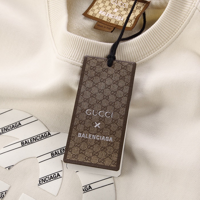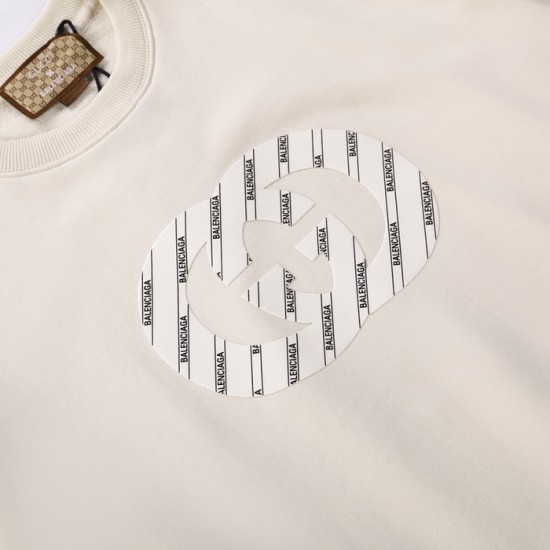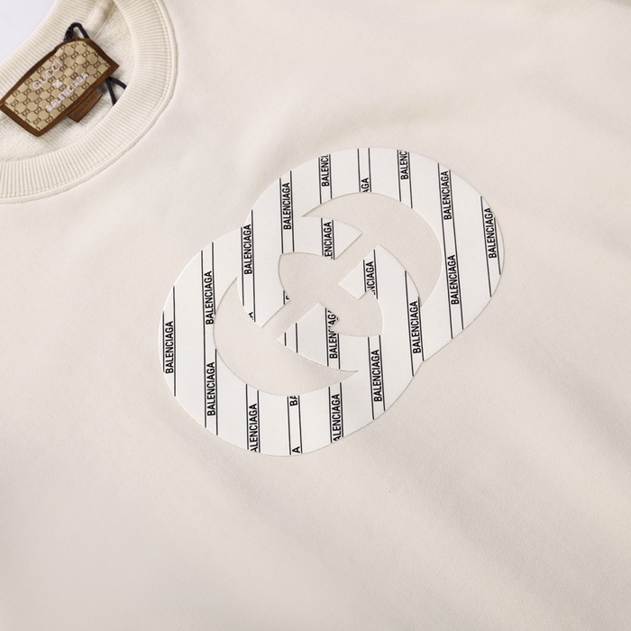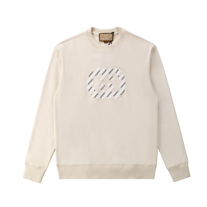 -グッチユニセックスコットンクルーネック長袖Tシャツc04077アイボリー