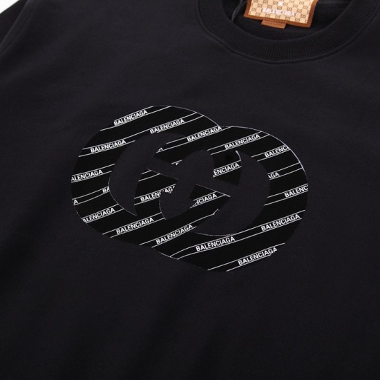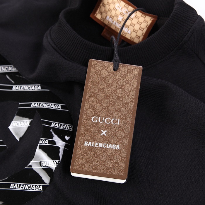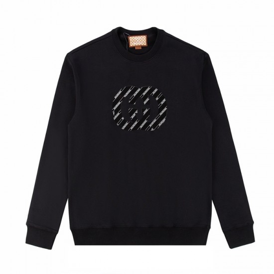 -グッチユニセックスコットンクルーネック長袖Tシャツc04078ブラック