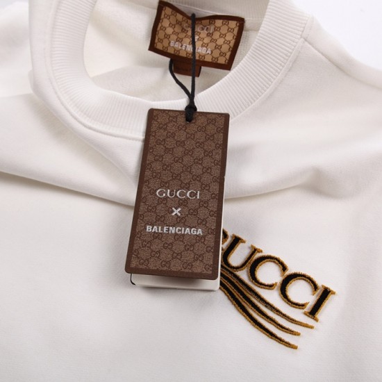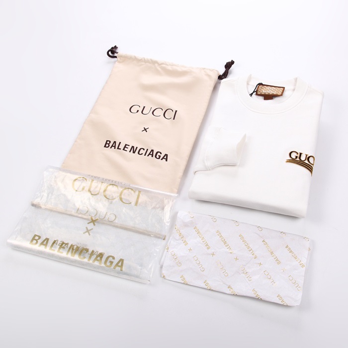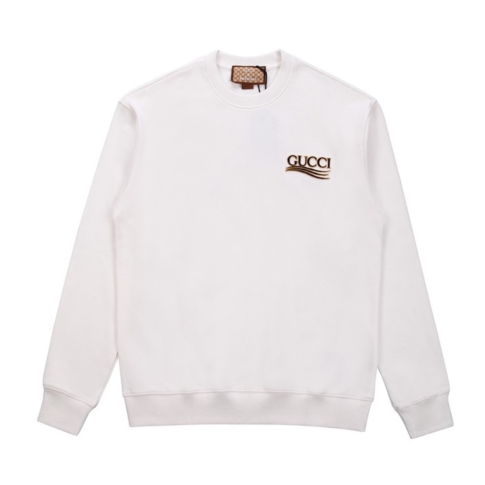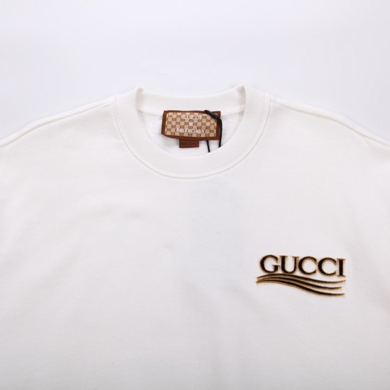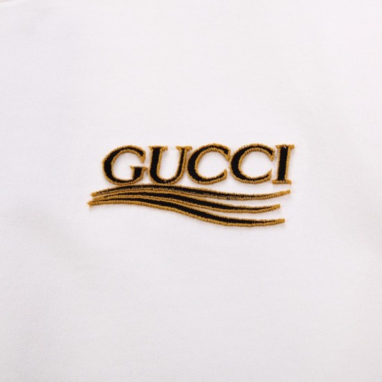 -グッチユニセックスコットンクルーネック長袖Tシャツc04084アイボリー