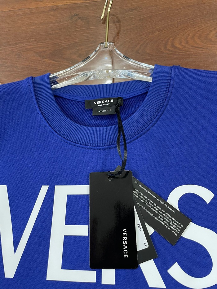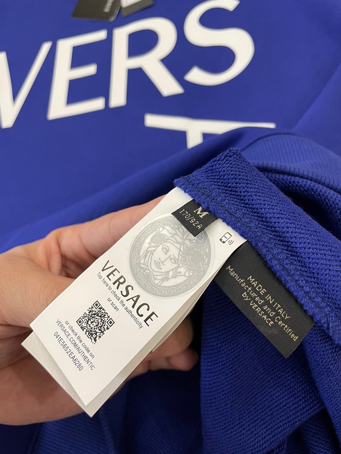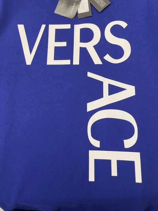 -ヴェルサーチェメンズメデューサクルーネック長袖Tシャツr0875ブルー