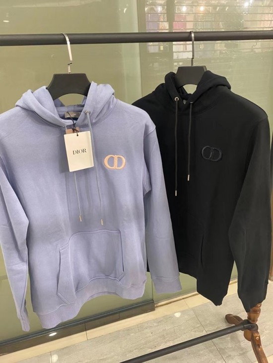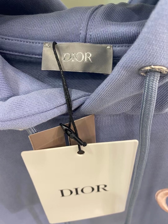 ディオールユニセックスカジュアルコットンフーディo01447ブルー