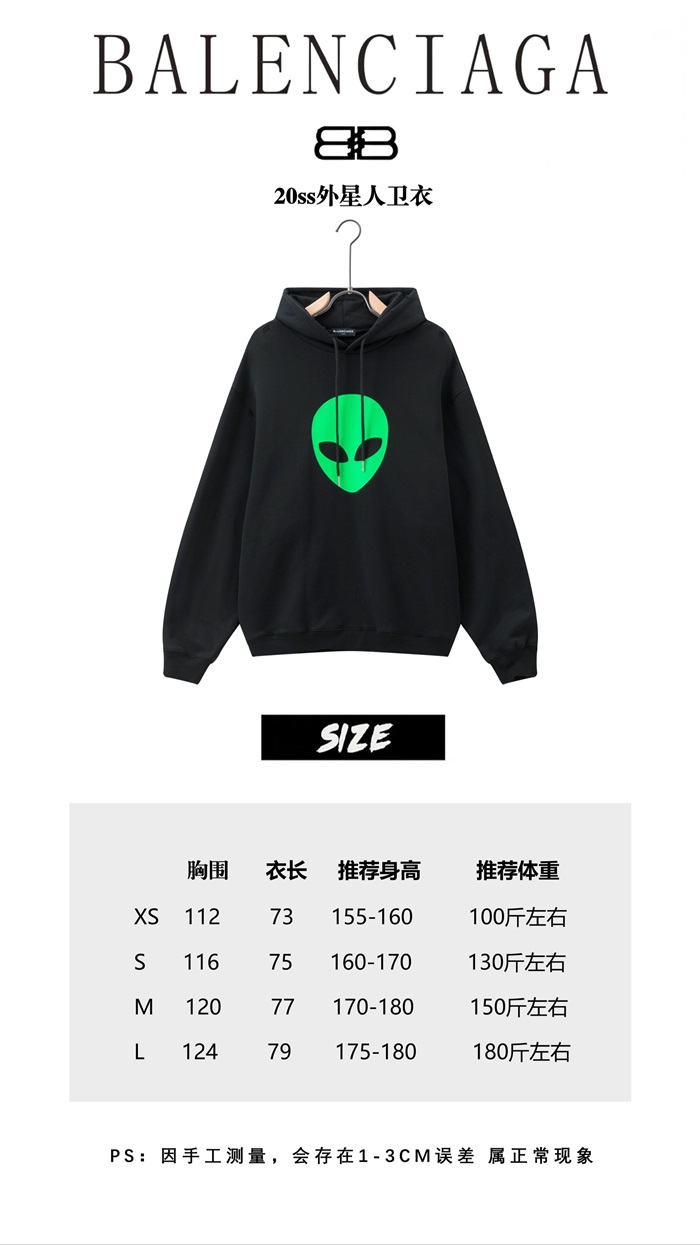 バレンシアガユニセックスコットンフーディl01191ブラック