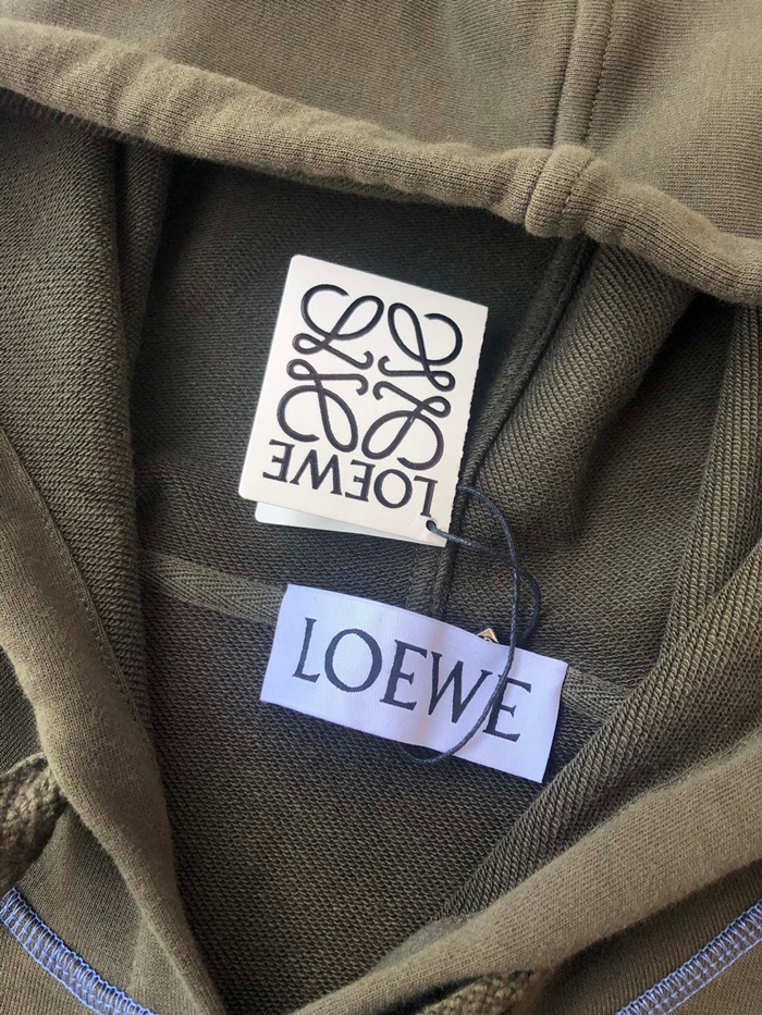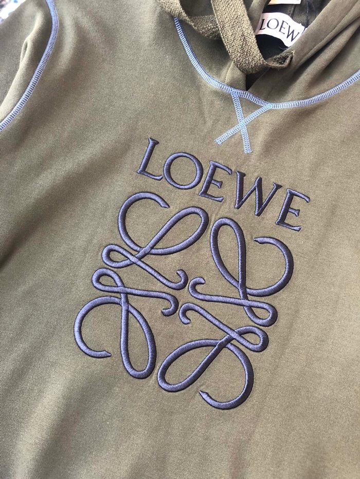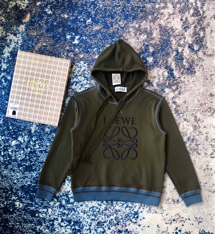 ロエベユニセックスコットンフーディe0496カーキ