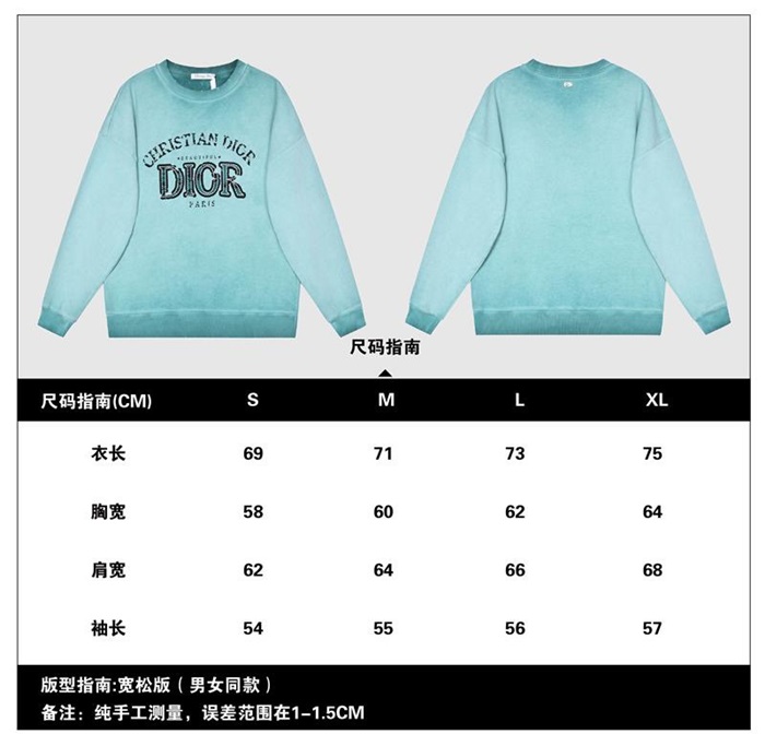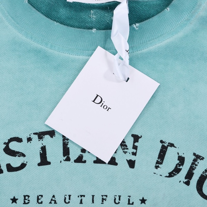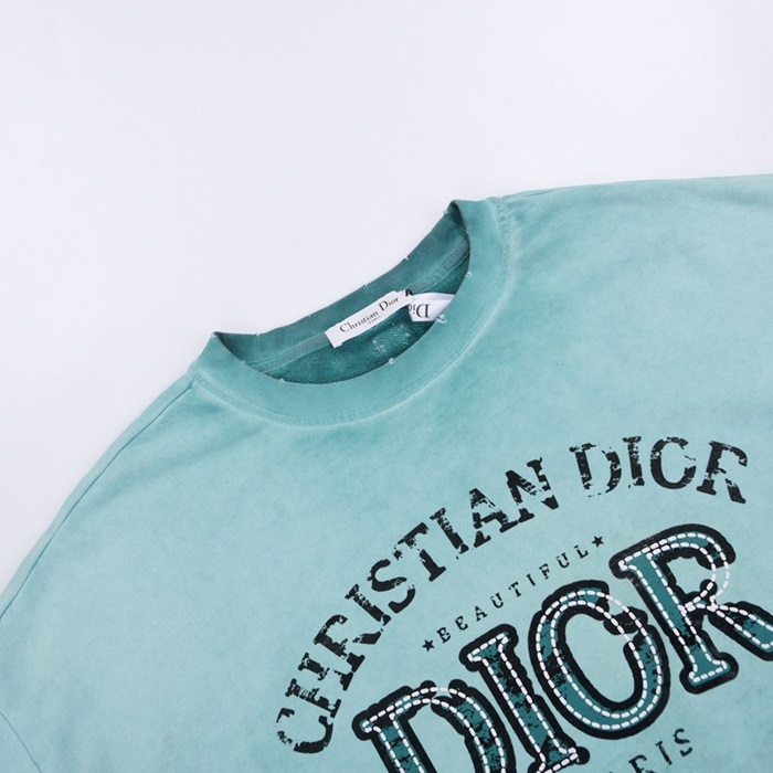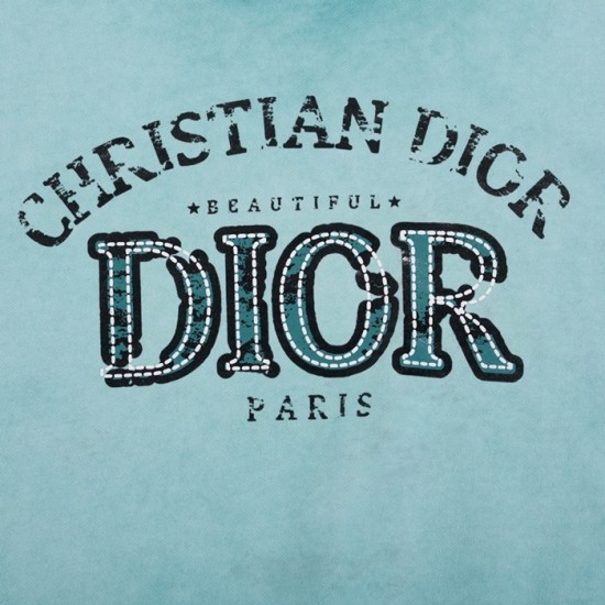 ディオールユニセックスカジュアルコットン長袖Tシャツo01463ブルー