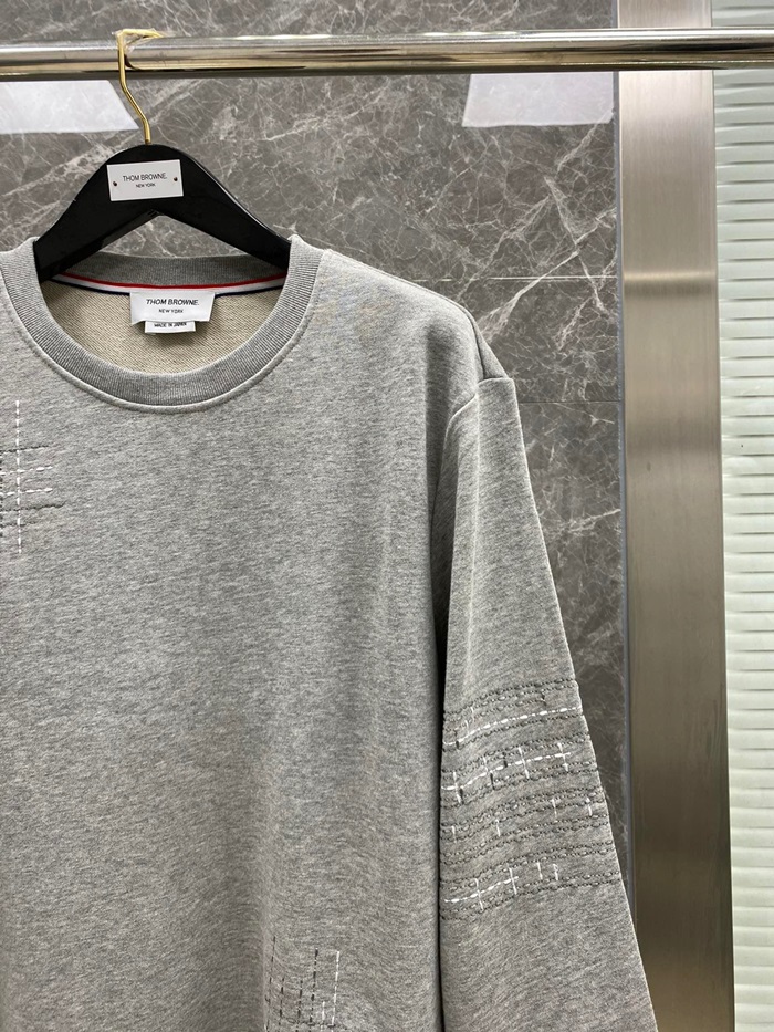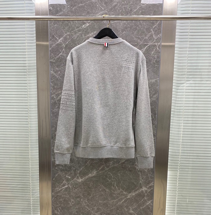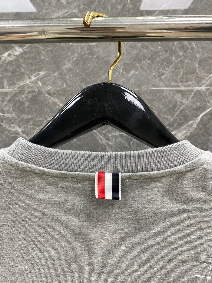 -トムブラウンメンズストラップクルーネック長袖Tシャツm01440グレー