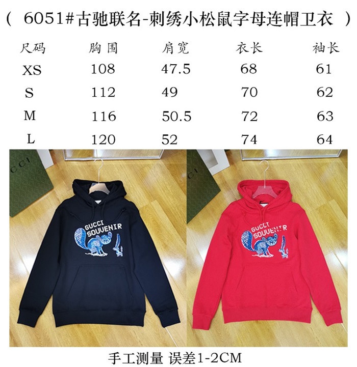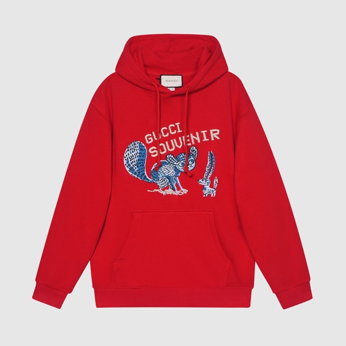 グッチユニセックスカジュアルフーディc04113レッド