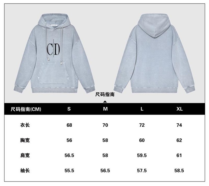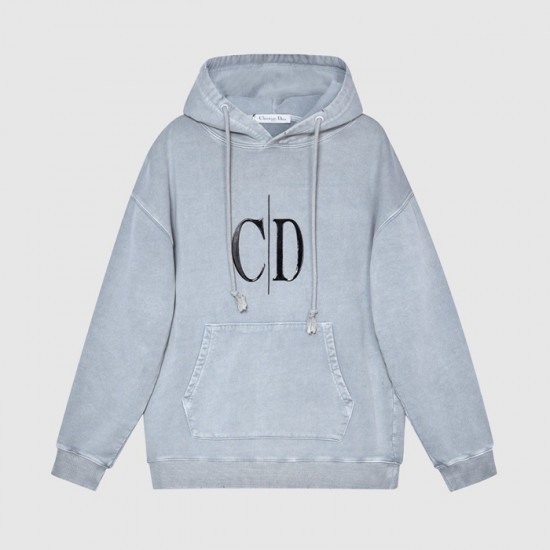 ディオールユニセックスカジュアルコットンフーディo01475グレー
