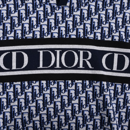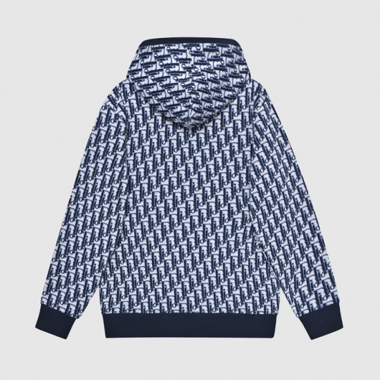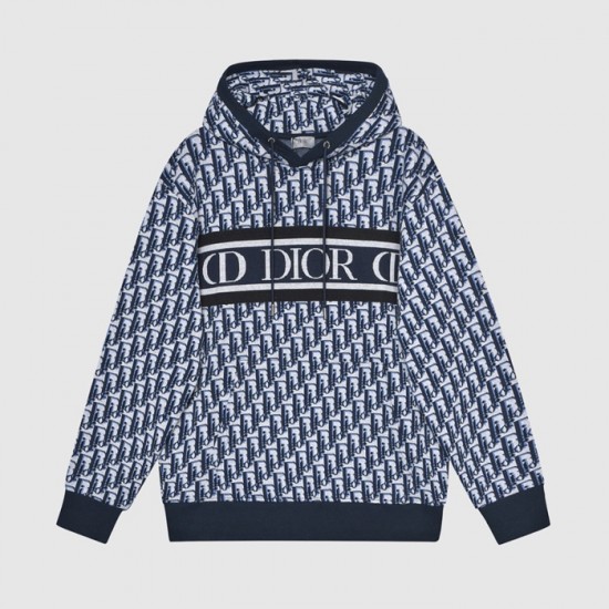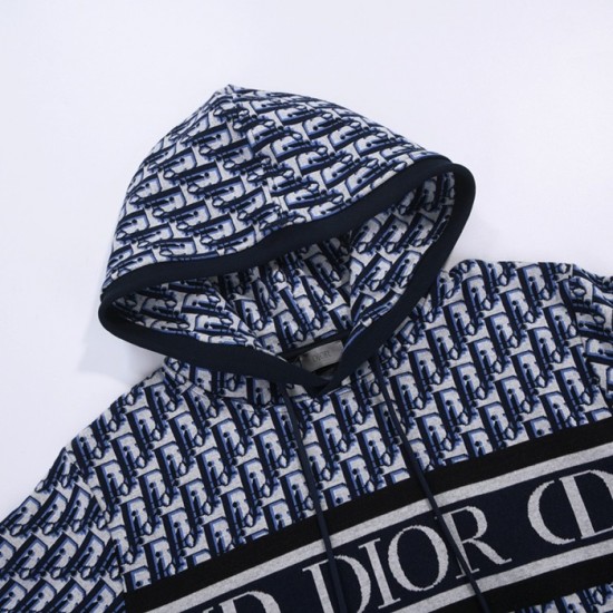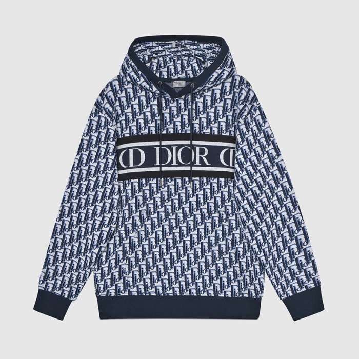 ディオールユニセックスカジュアルコットンフーディo01494ブルー