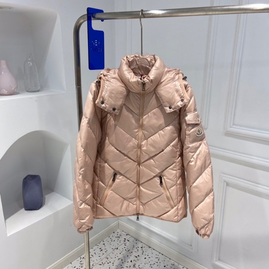 モンクレールレディースパッチモダンダウンショートパディングc02300ピンク