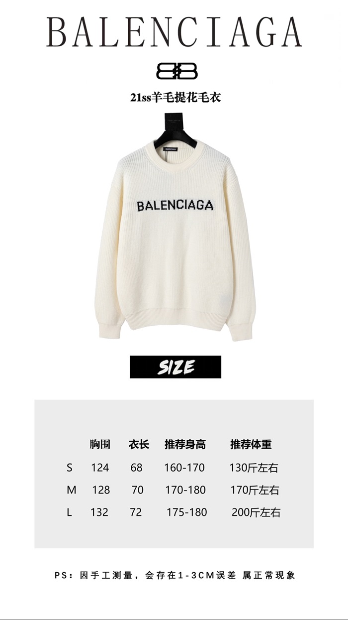 -バレンシアガメンズクルーネックセーターl01214ホワイト