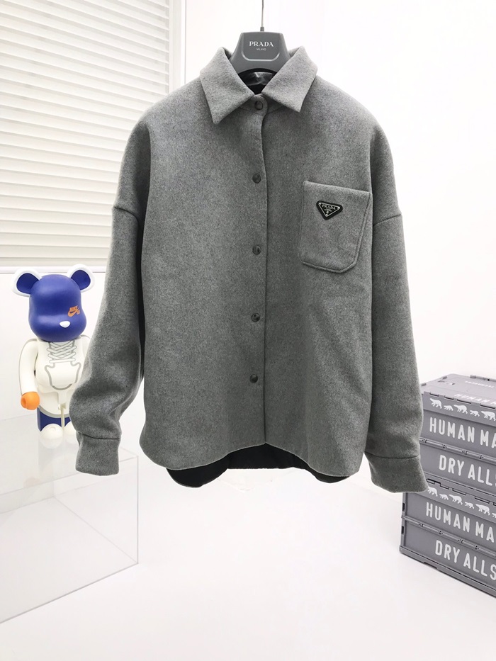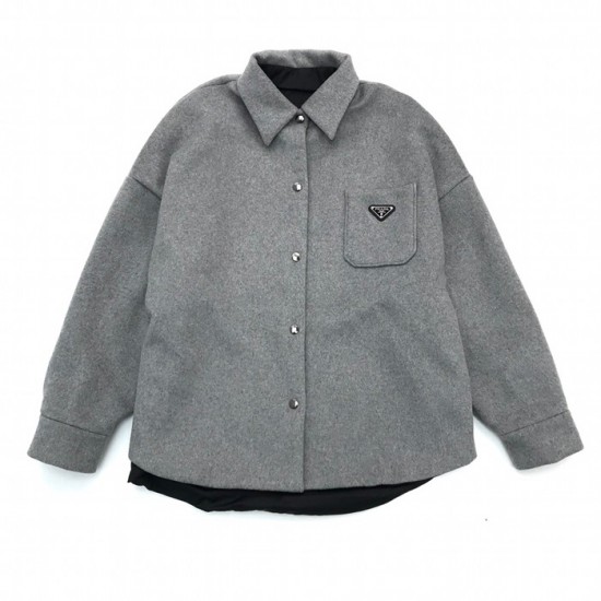 プラダユニセックスベーシックコットンシャツa02445グレー