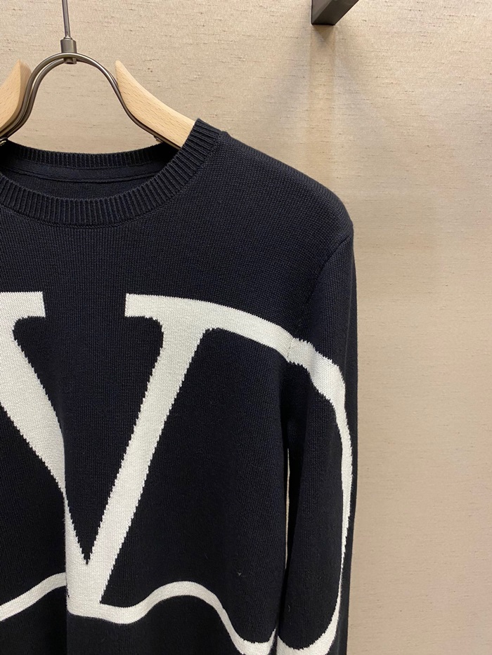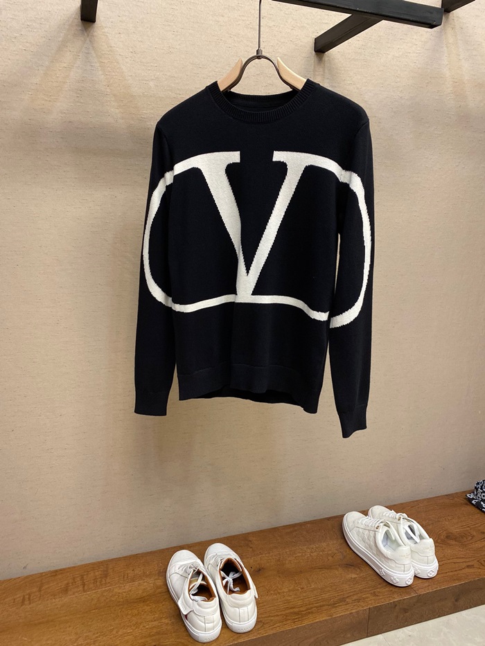 -ヴァレンティノメンズビッグクルーネックウールセーターl0487ブラック