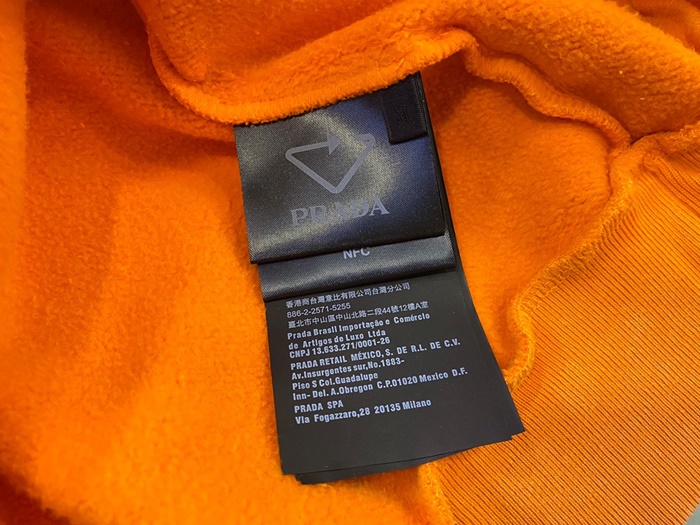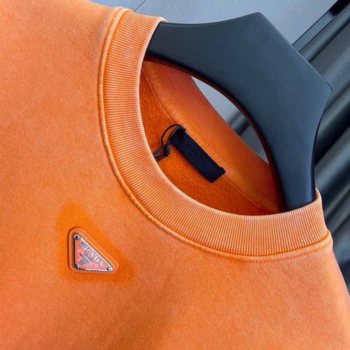 -プラダメンズクルーネック長袖Tシャツa02448オレンジ