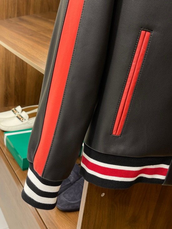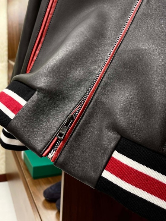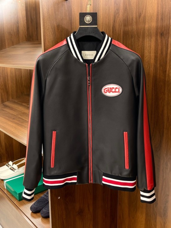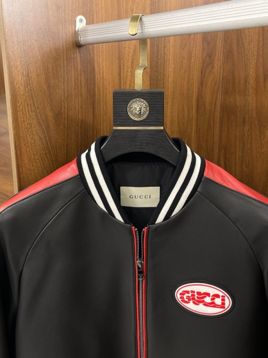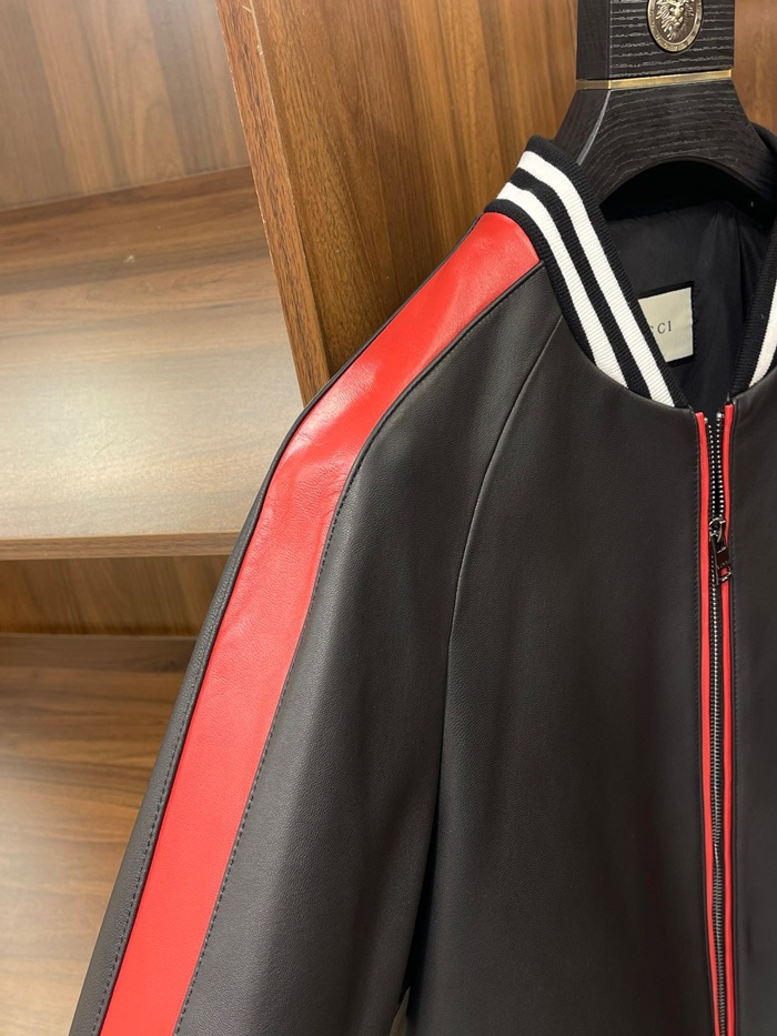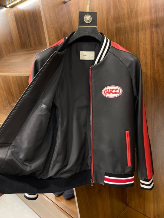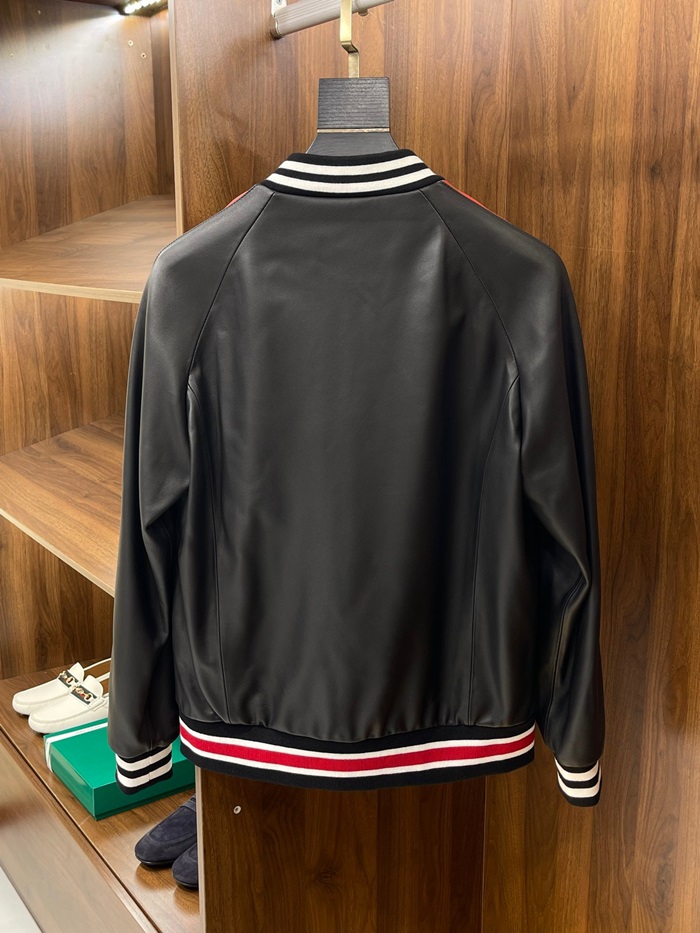 グッチメンズクラシックカジュアルレザージャケットc04448ブラック