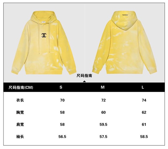 シャネルユニセックスオーバーサイズコットンフーディa0813イエロー