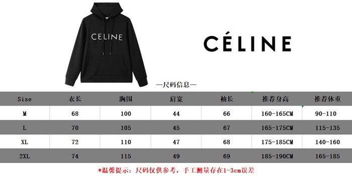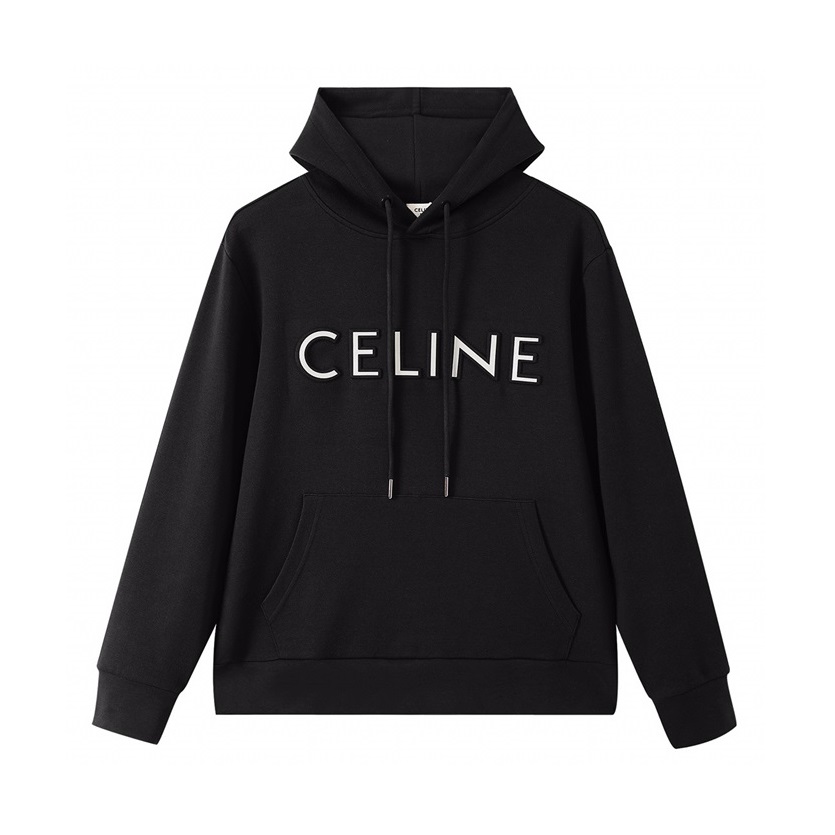 セリーヌユニセックスコットンフーディl0183ブラック