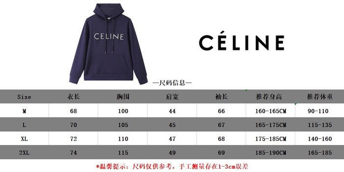 セリーヌユニセックスコットンフーディl0184ネイビー