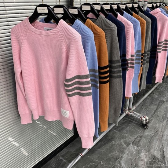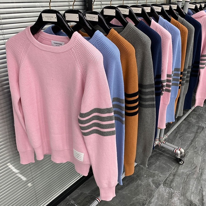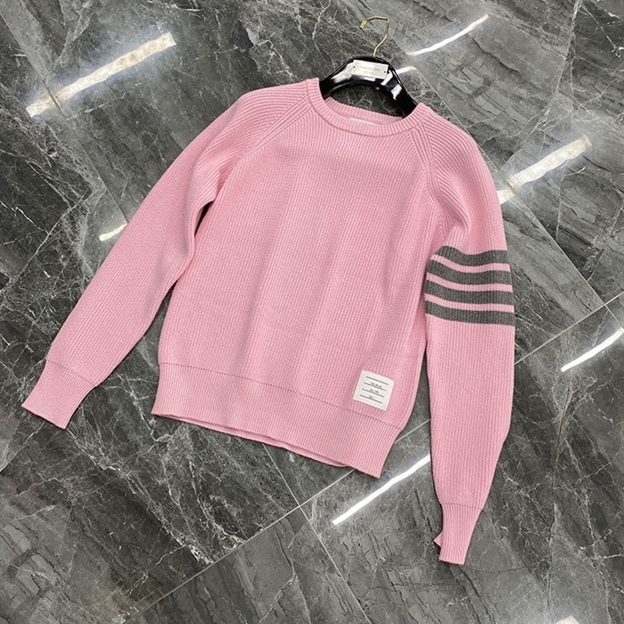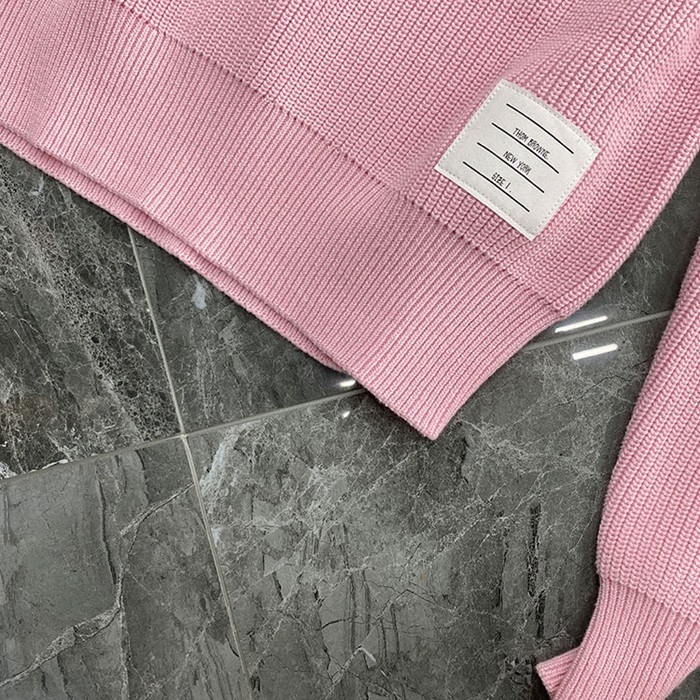-トムブラウンユニセックスストラップクルーネックウールセーターm01484ピンク