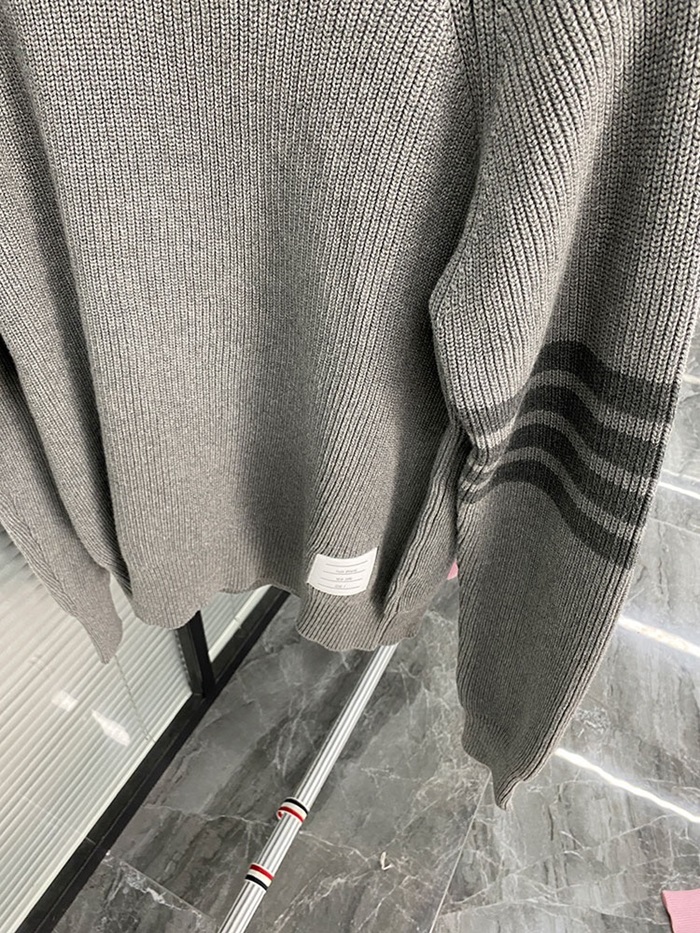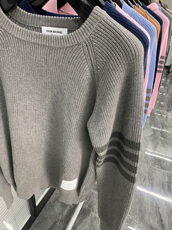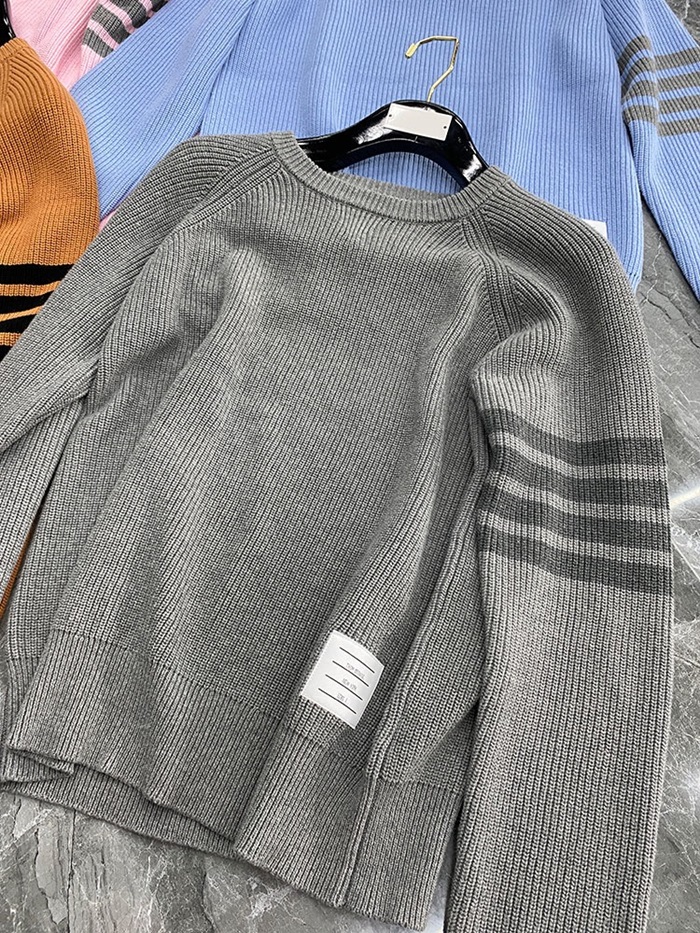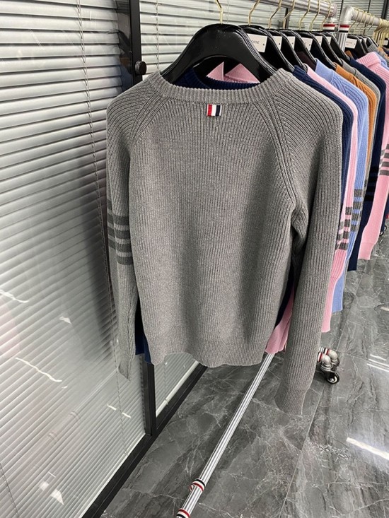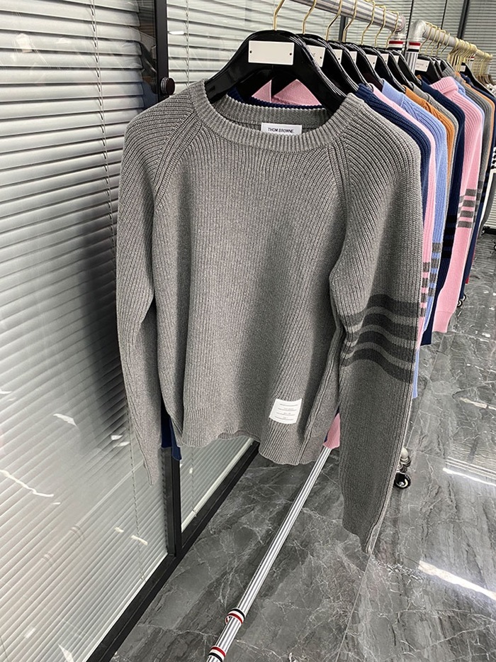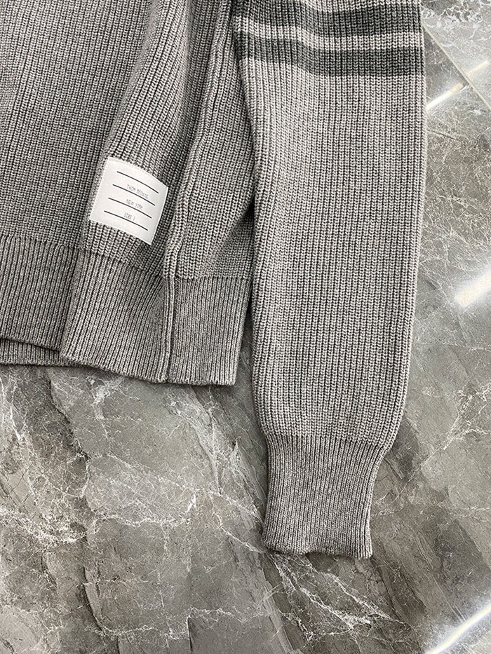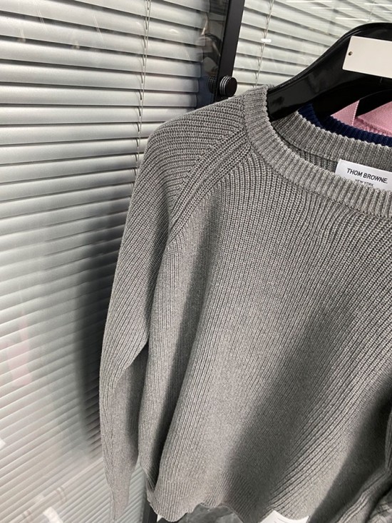 -トムブラウンユニセックスストラップクルーネックウールセーターm01486グレー