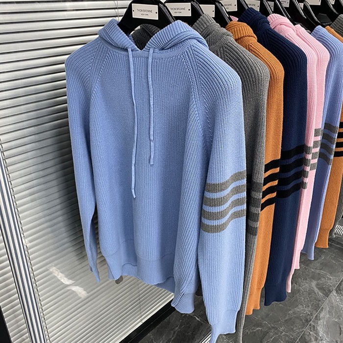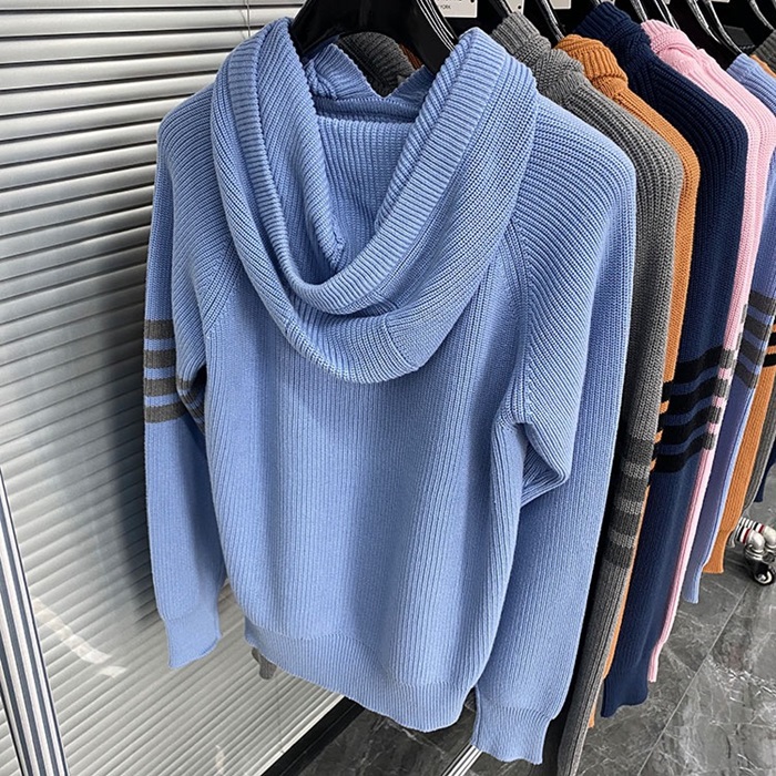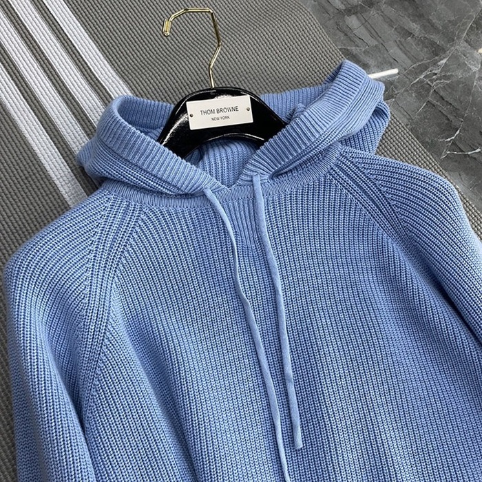 トムブラウンユニセックスカジュアルコットンフーディm01487ブルー