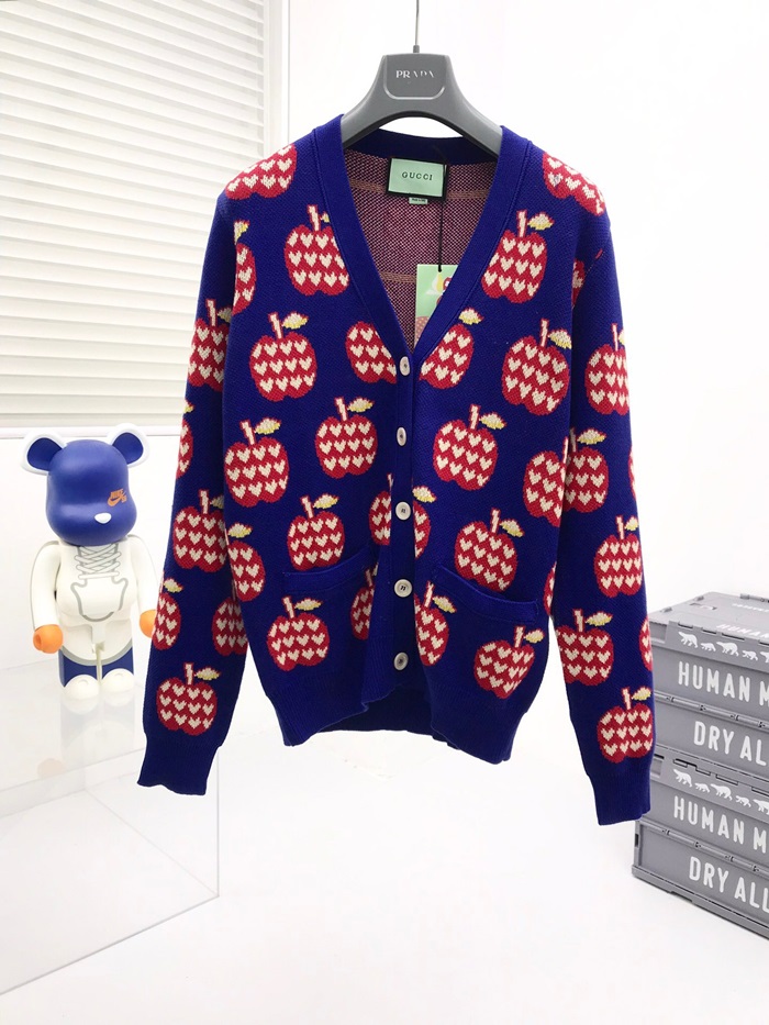 グッチユニセックストレンディネックカーディガンc04478ブルー