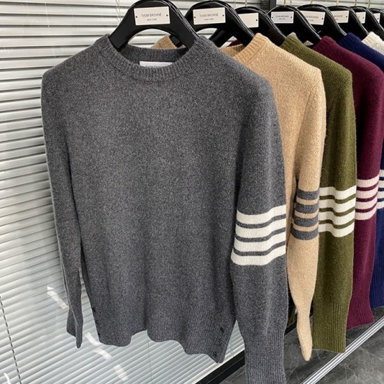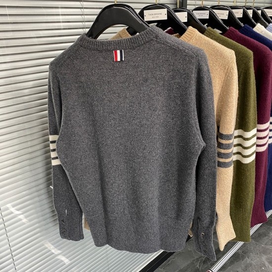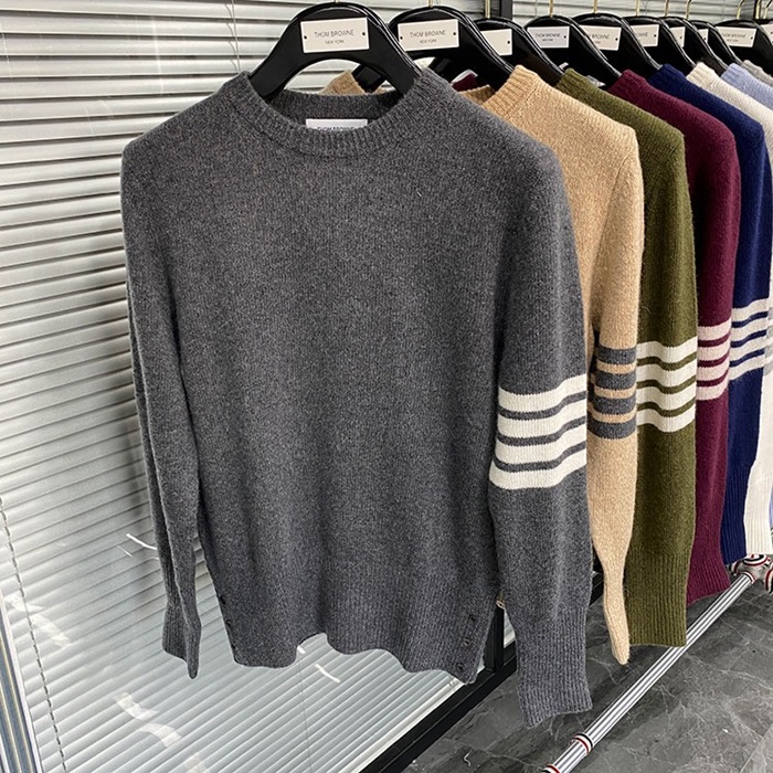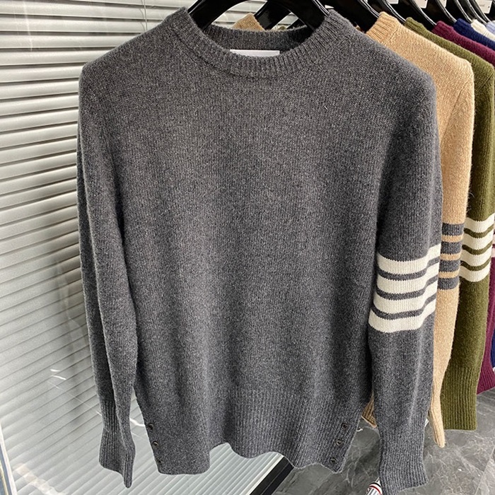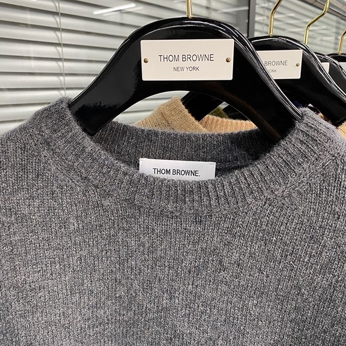 -トムブラウンユニセックスストラップクルーネックウールセーターm01492グレー