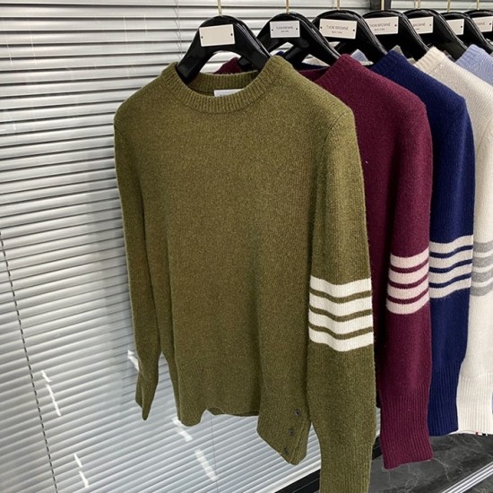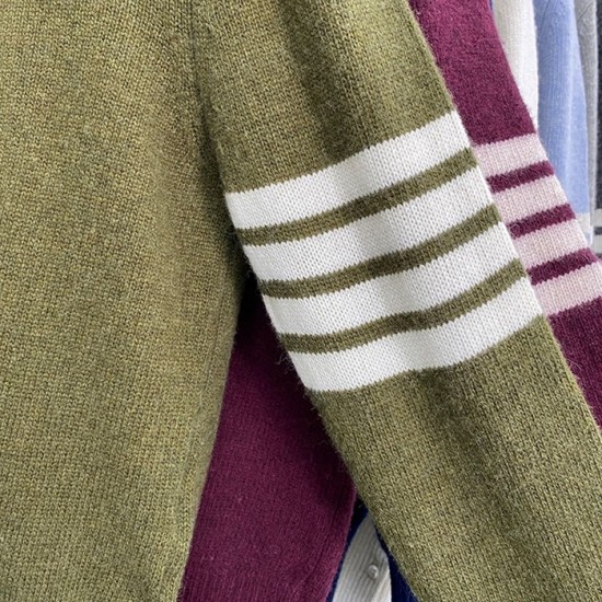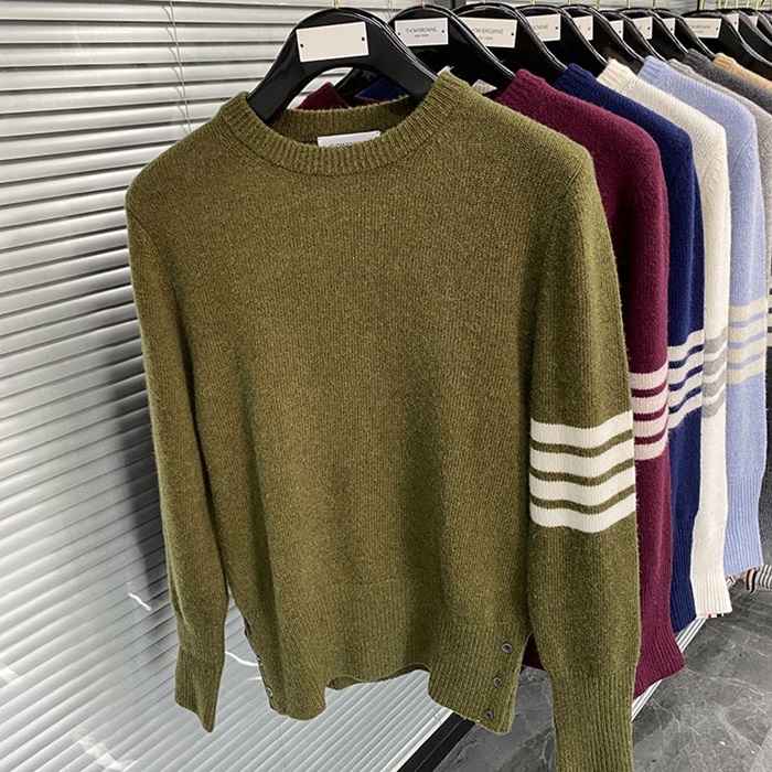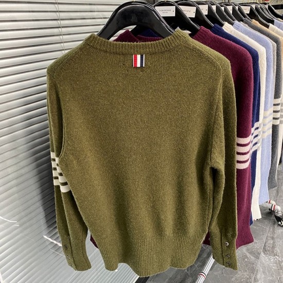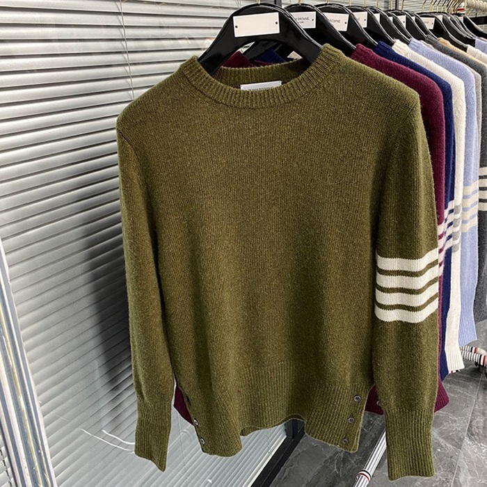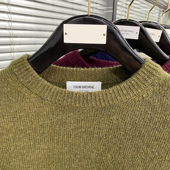 -トムブラウンユニセックスストラップクルーネックウールセーターm01495カーキ