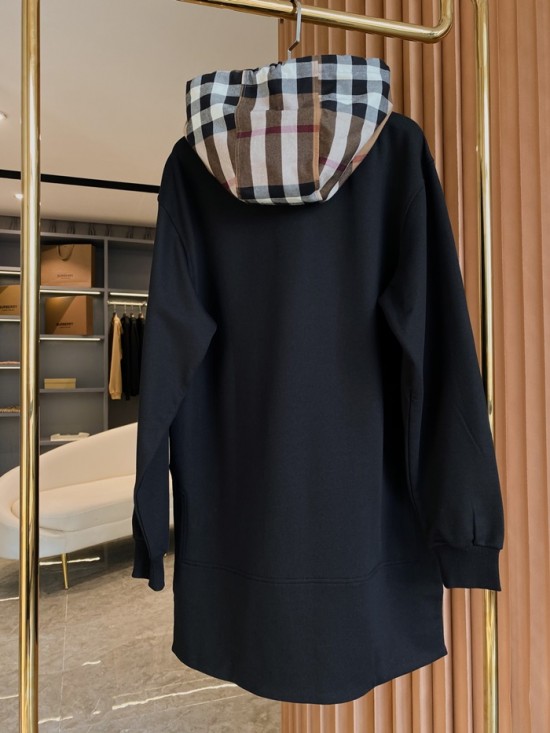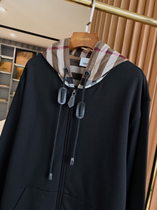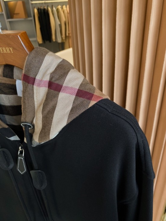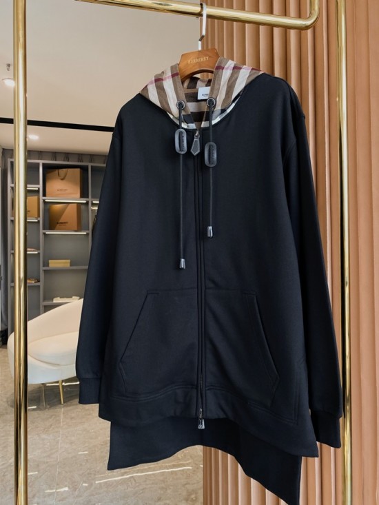 バーバリーユニセックスカジュアルコットンフーディr04226ブラック