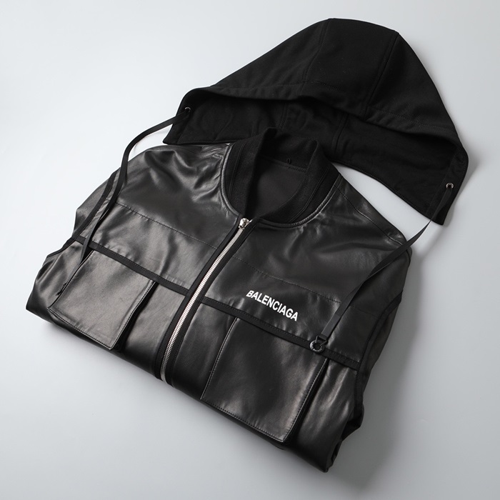 バレンシアガメンズカジュアルレザージャケットl01236ブラック