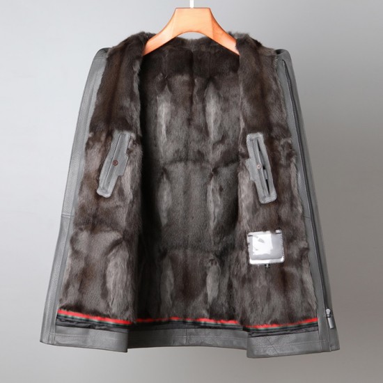 アルマーニメンズクラシックカジュアルレザージャケットm0915グレー