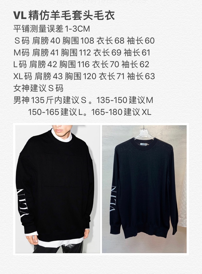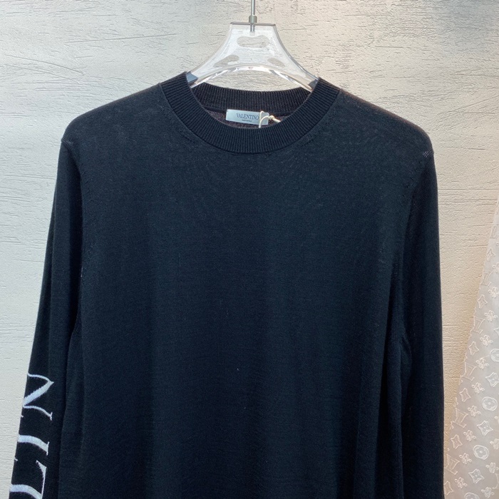 -ヴァレンティノメンズビッグクルーネックウールセーターl0492ブラック