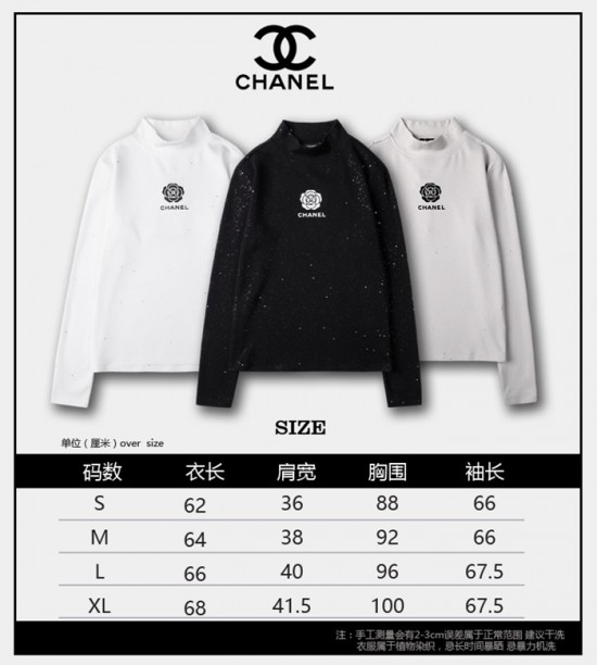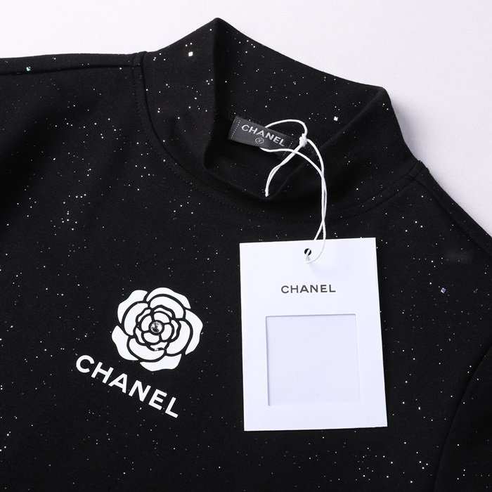 -シャネルレディースクルーネック長袖Tシャツl0817ブラック