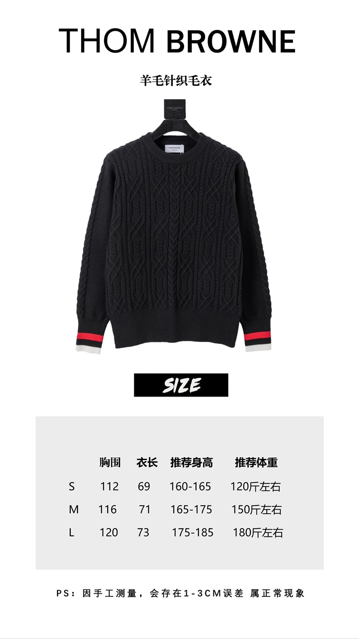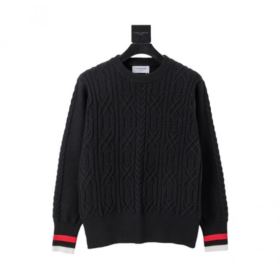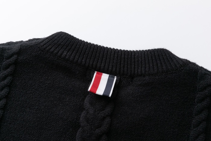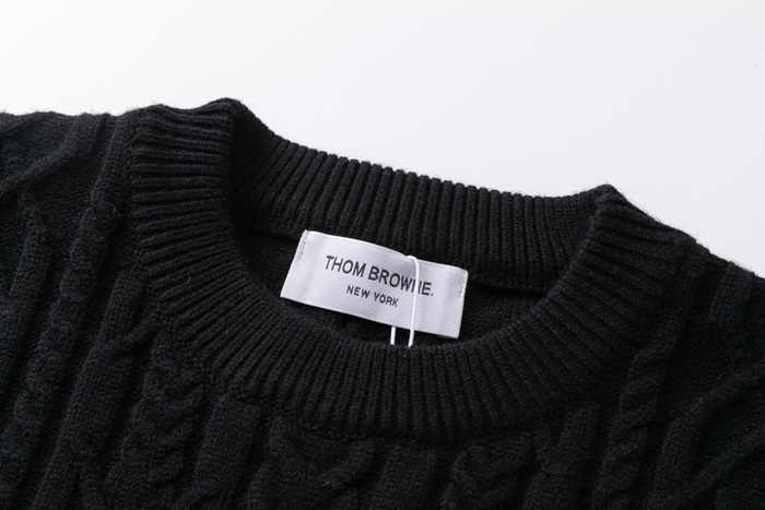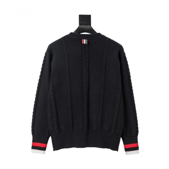 -トムブラウンユニセックスストラップクルーネックウールセーターm01500ブラック