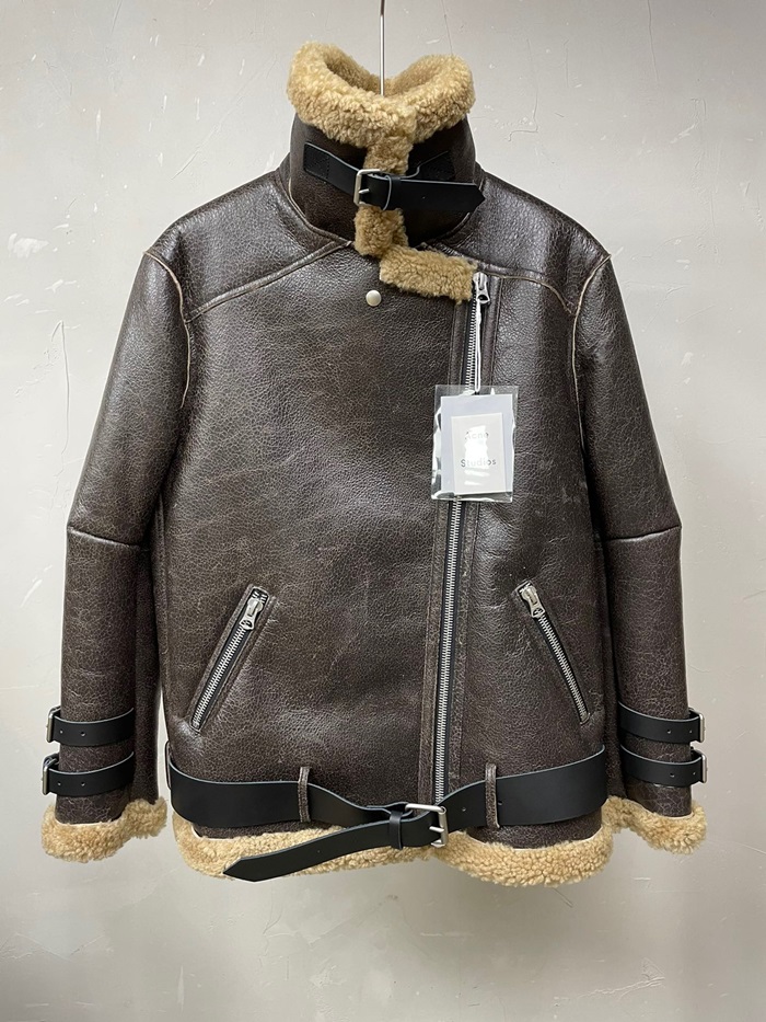 アクネストゥディオズユニセックスカジュアルレザージャケットn0135ブラック