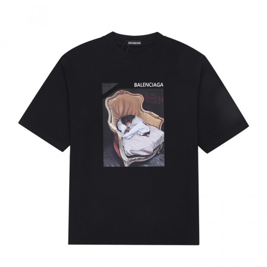 バレンシアガユニセックスコットン半袖Tシャツl01241ブラック
