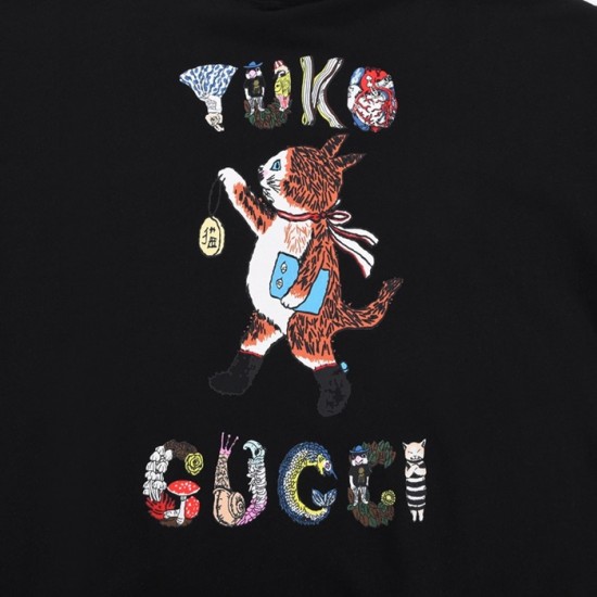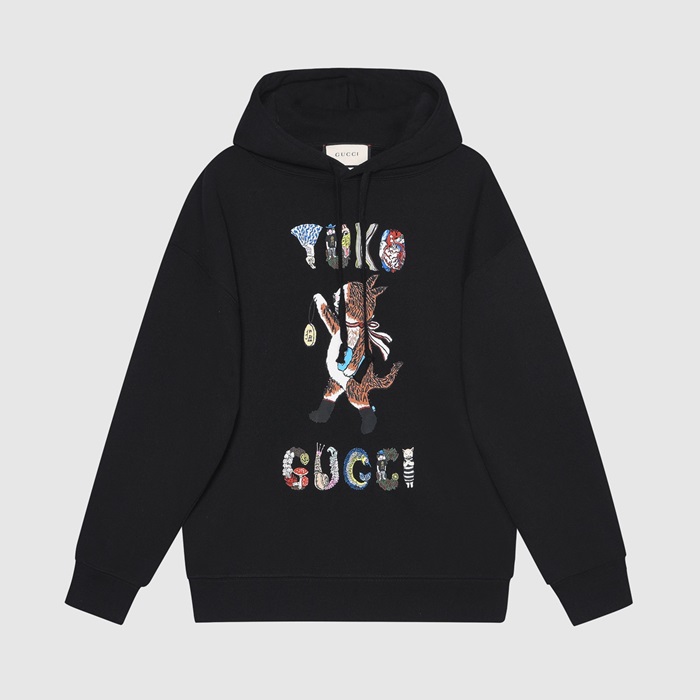 グッチユニセックスカジュアルフーディc04495ブラック