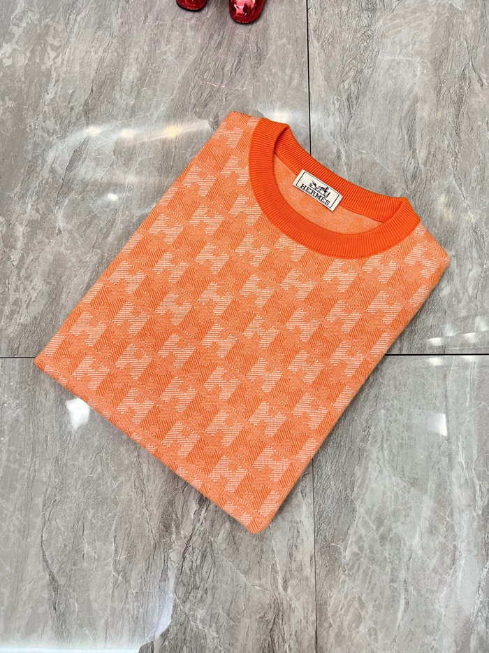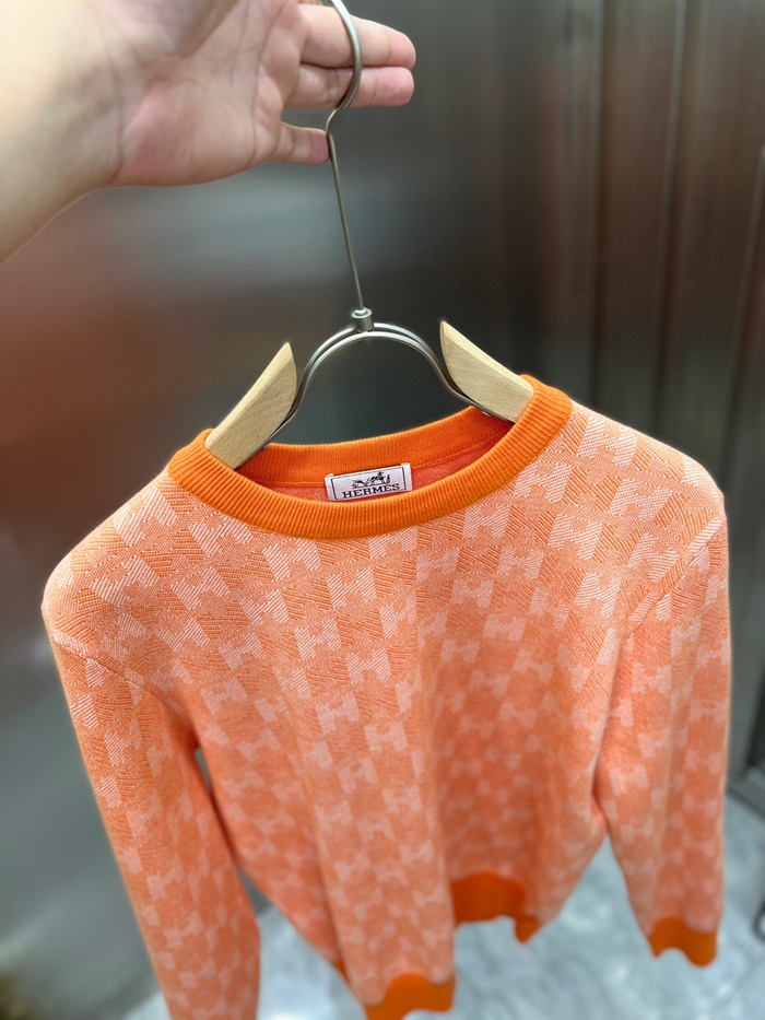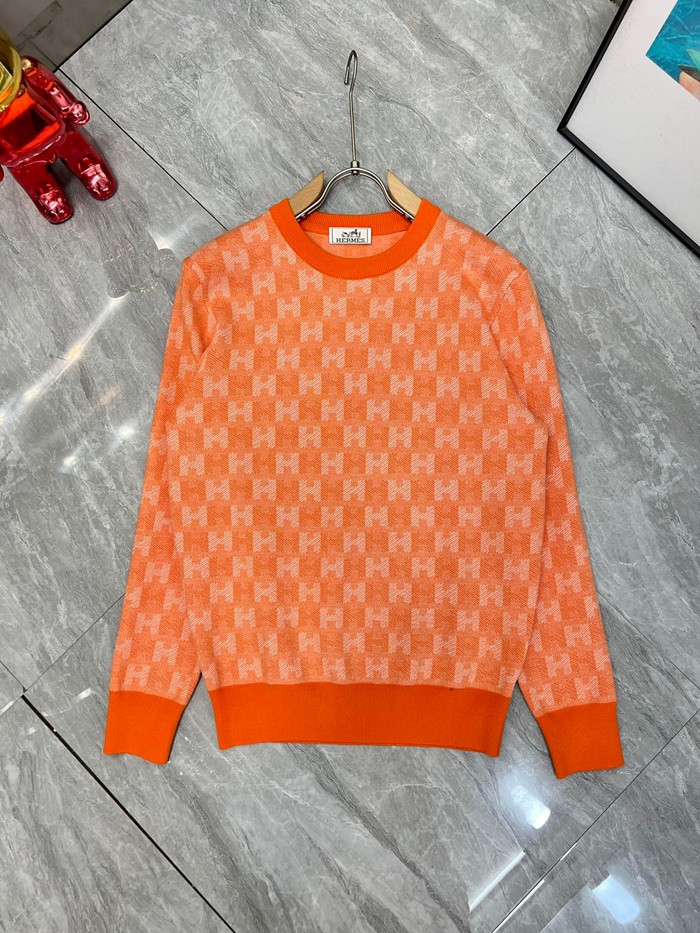 -エルメスメンズクルーネックウールセーターr0721オレンジ