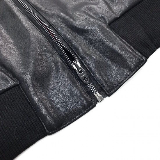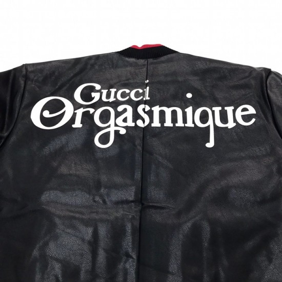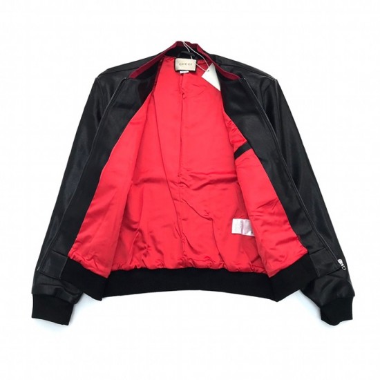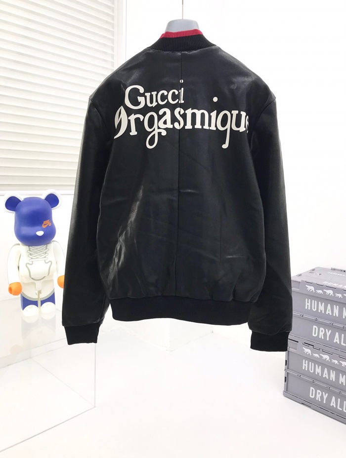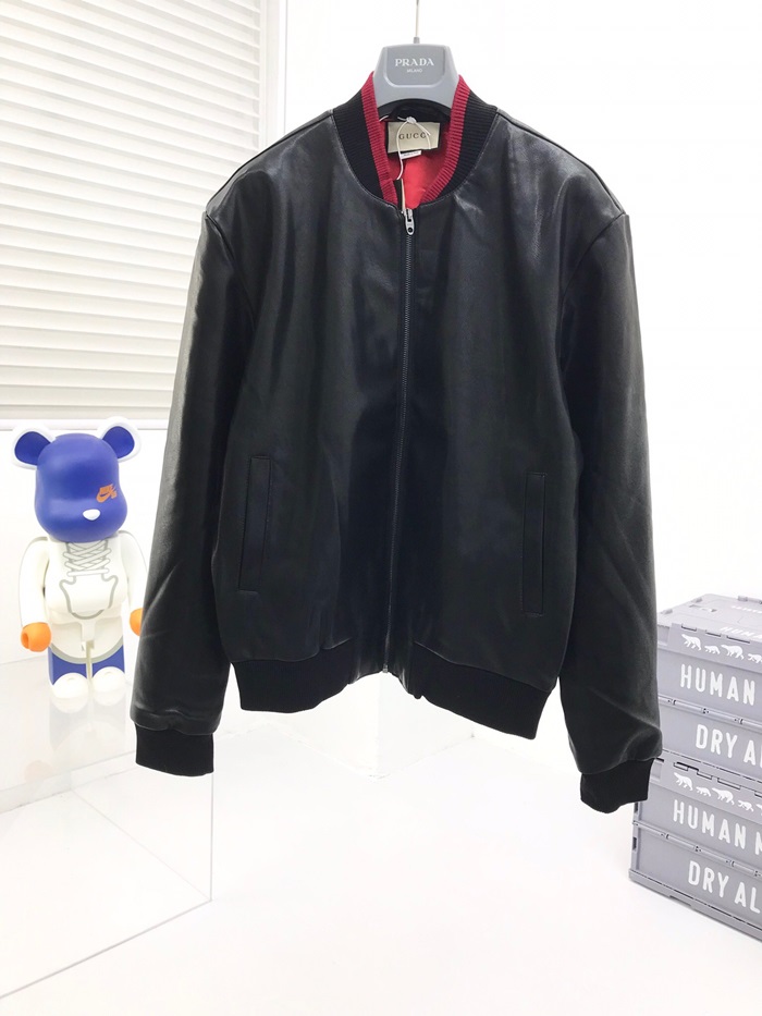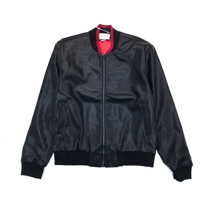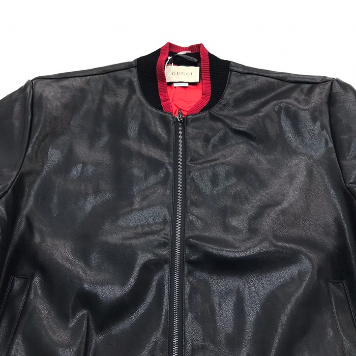 グッチメンズクラシックカジュアルレザージャケットc04513ブラック