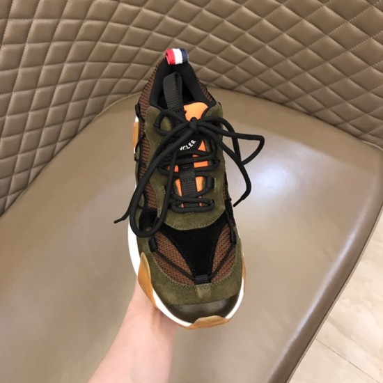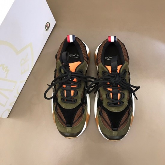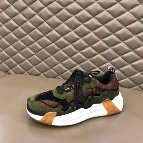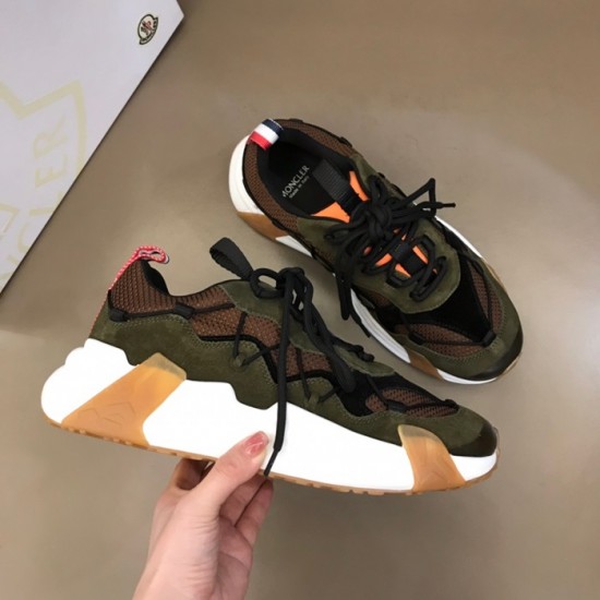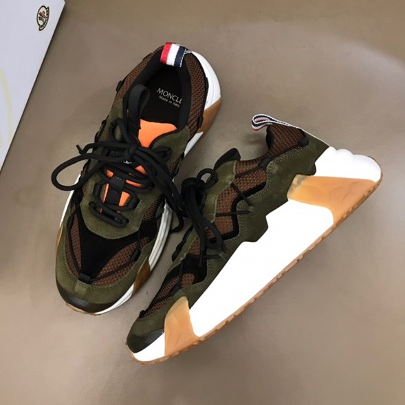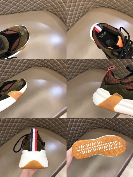 モンクレールメンズカジュアルレザースニーカーカーキc02434