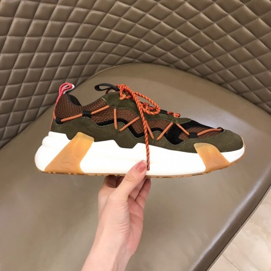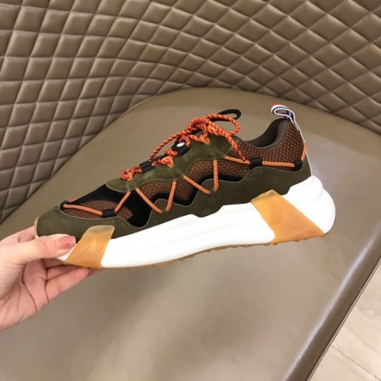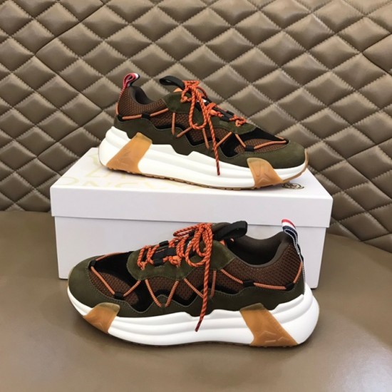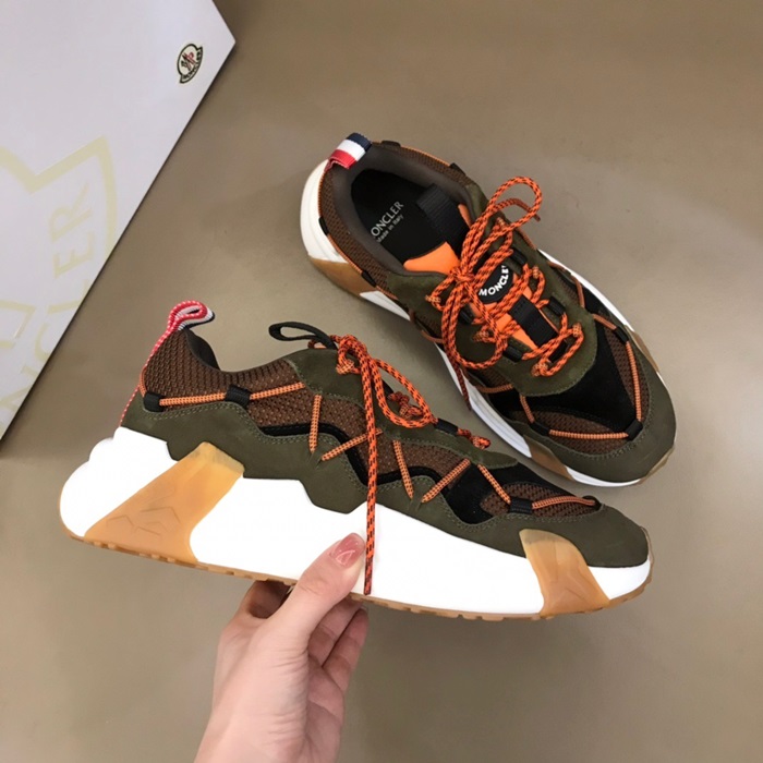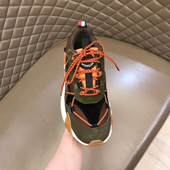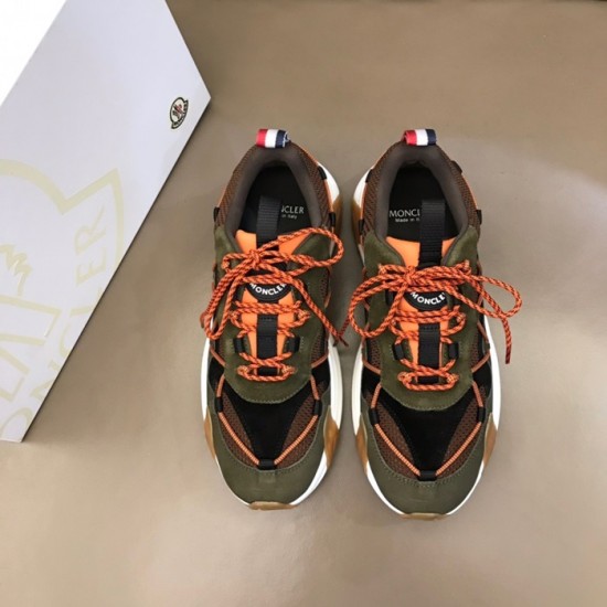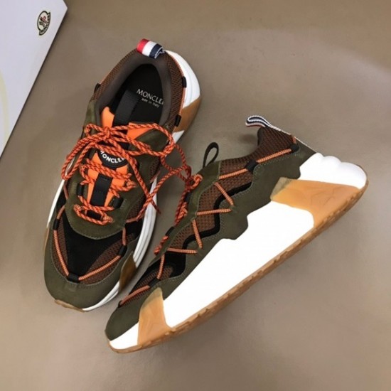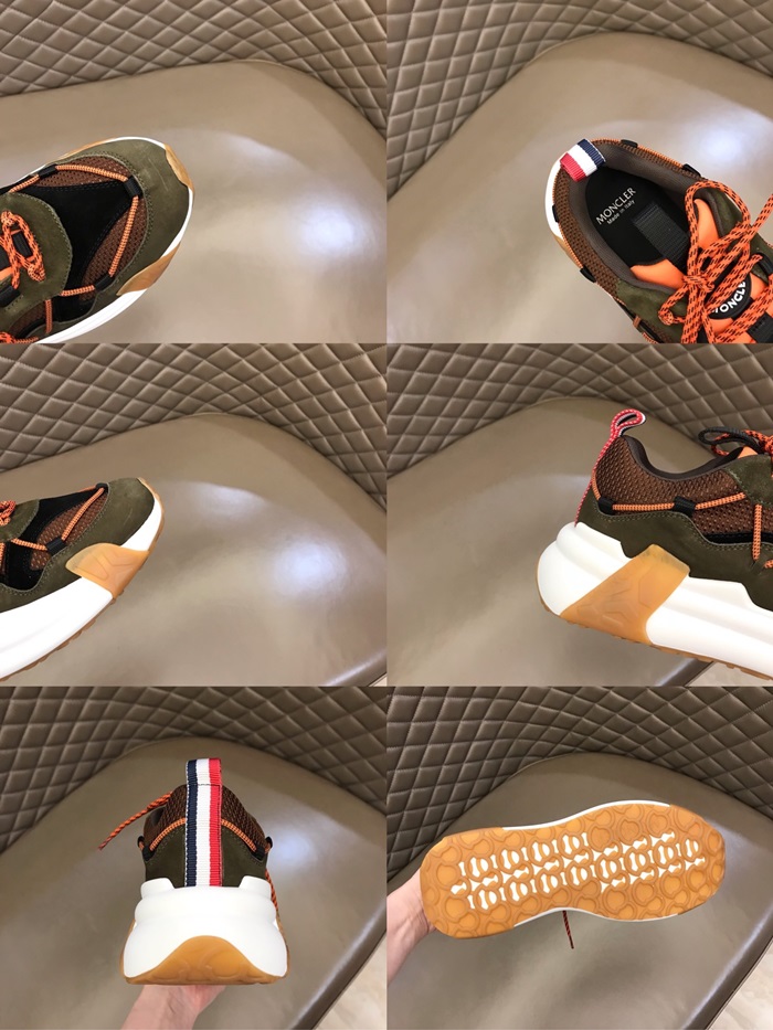 モンクレールメンズカジュアルレザースニーカーカーキc02435