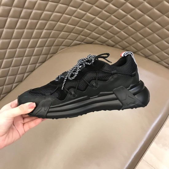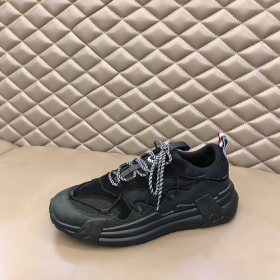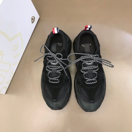 モンクレールメンズカジュアルレザースニーカーブラックc02436