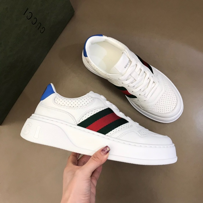 グッチユニセックストレンディレザースニーカー(225-275)ホワイトc04517