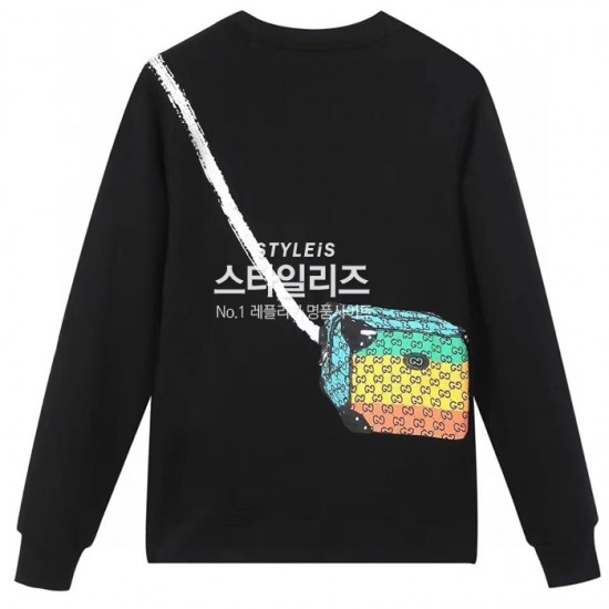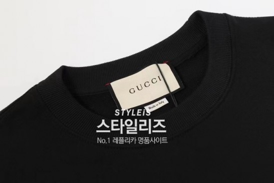 -グッチメンズコットンクルーネック長袖Tシャツc04529ブラック