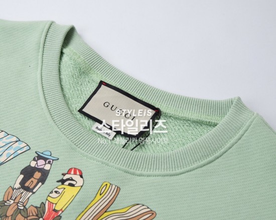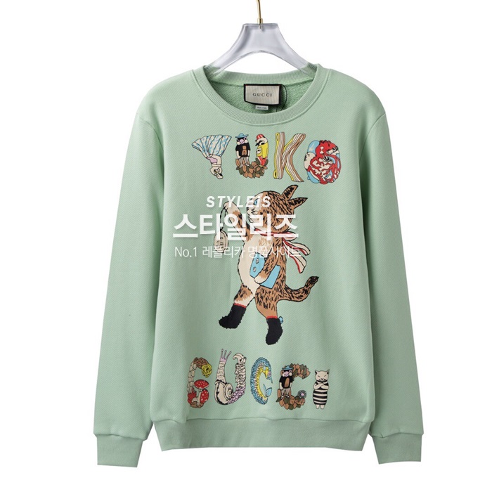 -グッチメンズコットンクルーネック長袖Tシャツc04534ミント