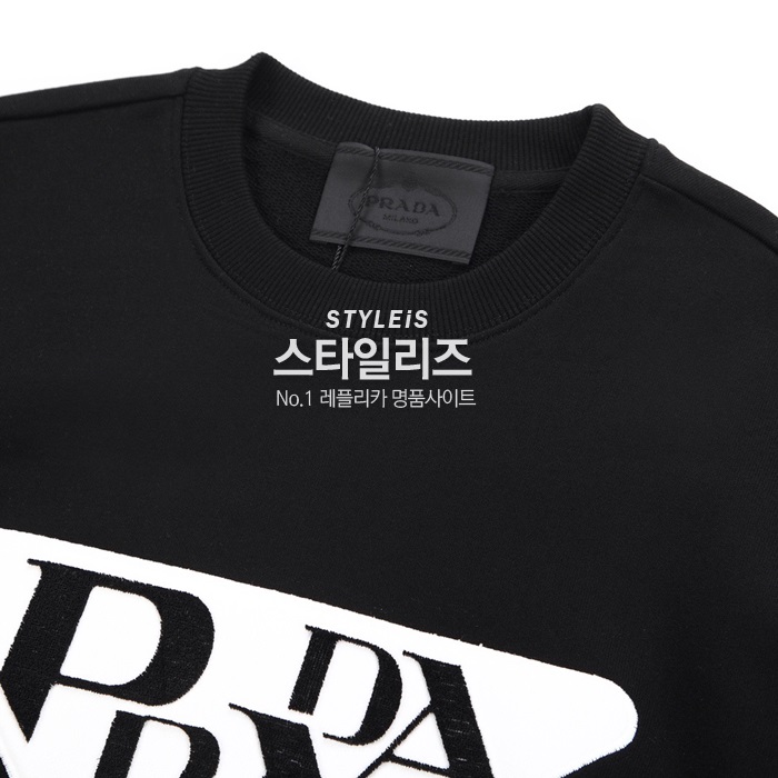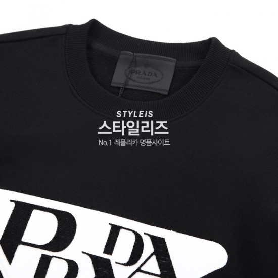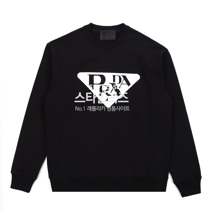 -プラダメンズクルーネック長袖Tシャツa02559ブラック