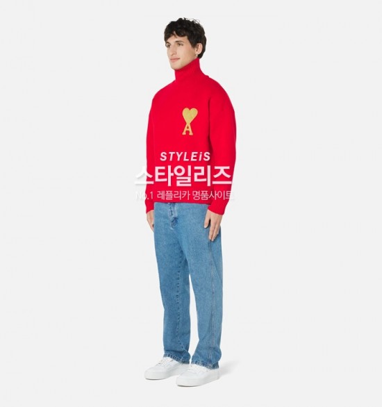 -アミユニセックスカジュアルタートルネックセーター0256レッド