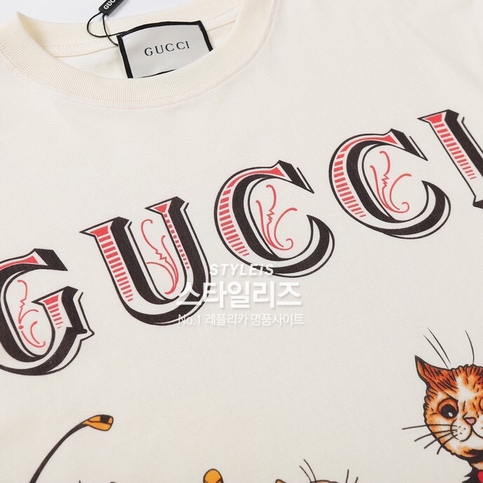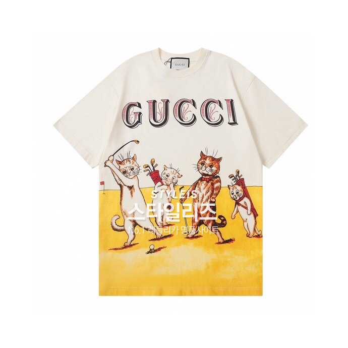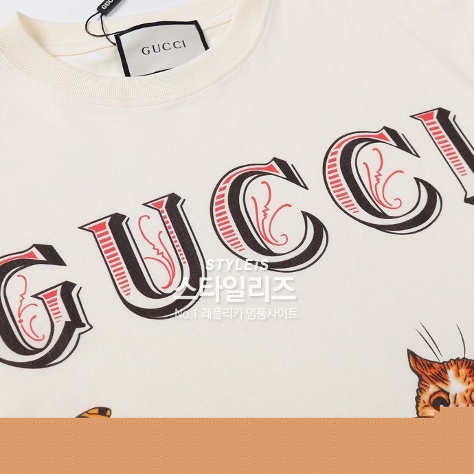 グッチメンズクルーネックアイボリー半袖Tシャツc04560