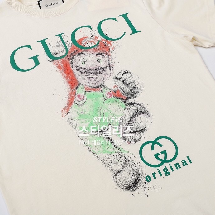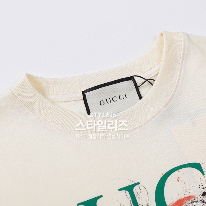 グッチメンズクルーネックアイボリー半袖Tシャツc04562