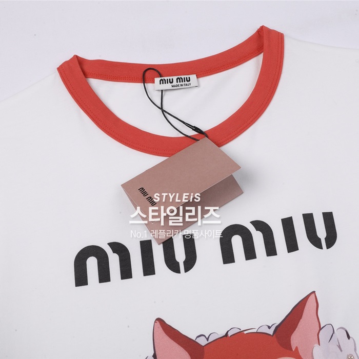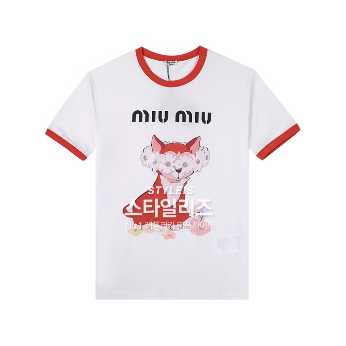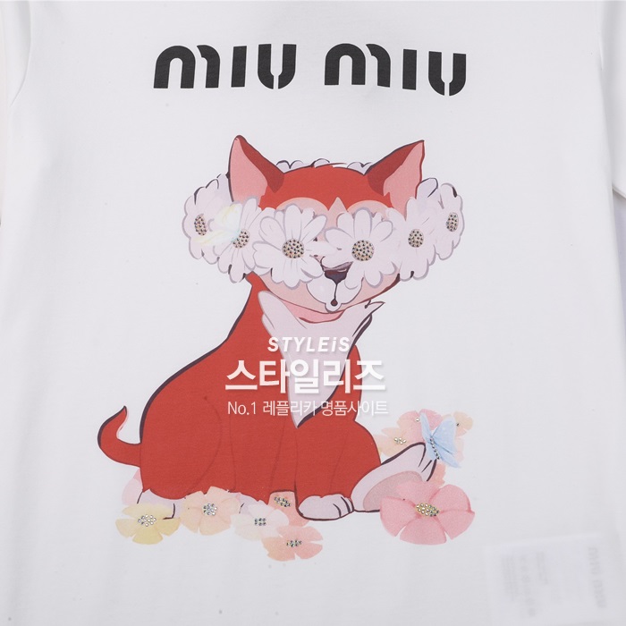 ミュウミュウレディースクルーネックホワイト半袖Tシャツu0240